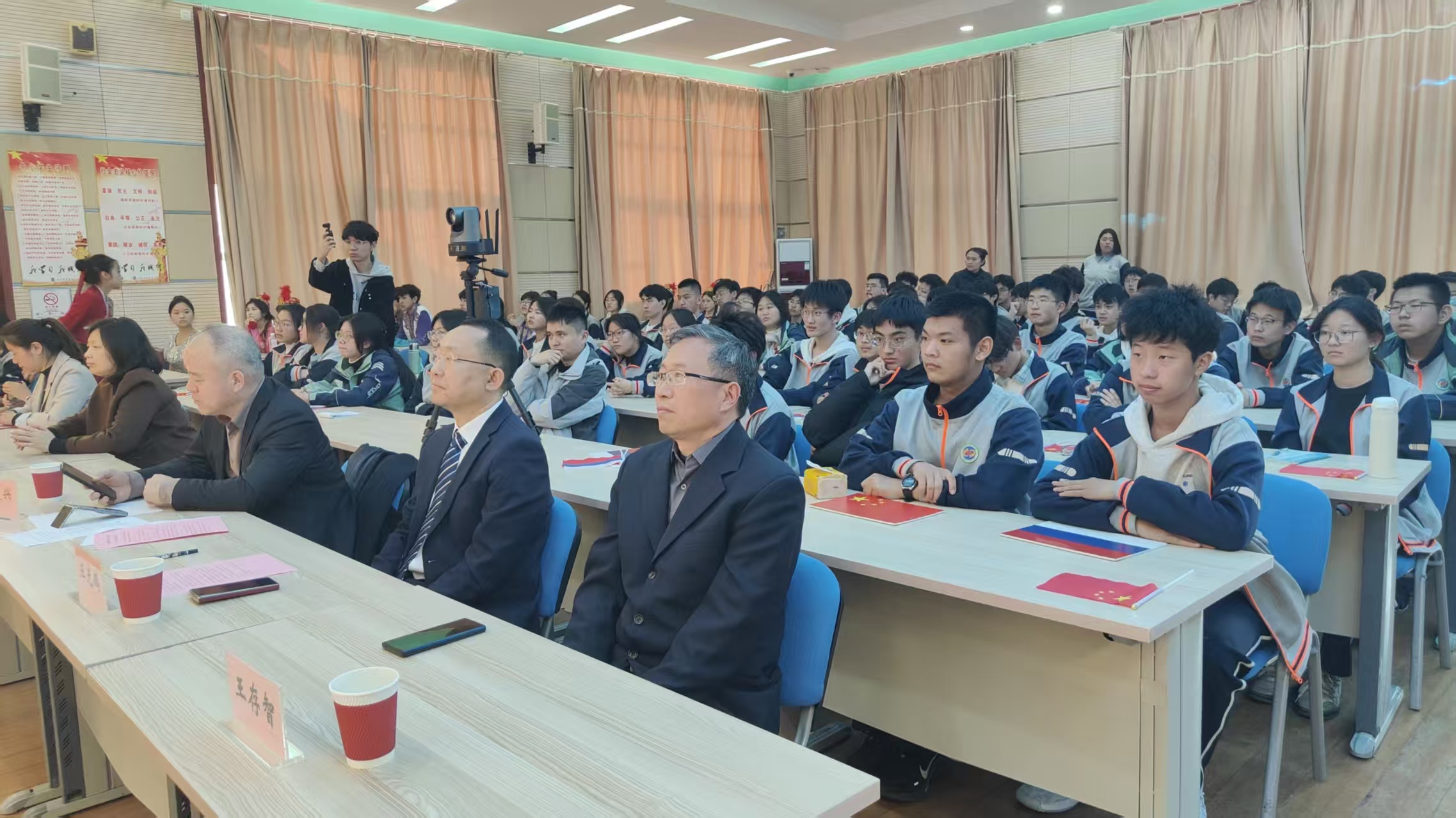 活动中,高二1班学生徐泽亚作为中方学生代表,用俄语介绍中国春节,尽管接触俄语不到两年,但她在老师的指导帮助下,通过日常早读、课间的刻苦学习积累,认真完成了展示任务。她在接受采访时表示,俄语的独特语法让她产生了浓厚兴趣,而学校搭建的交流平台,让她有机会展示自己、与俄方师生近距离交流,不仅加深了彼此的联系,还从俄方的教学视频中有了很多收获,尤其是俄方将“光的折射”等知识点与实践操作结合的教学演示,让正在学习相关内容的她颇受启发。