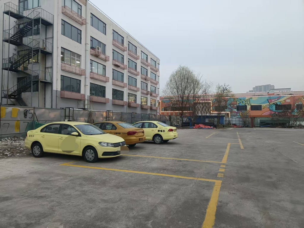 西海岸新区漩湾路一处培训场地停放着另一家驾校的多辆教练车。