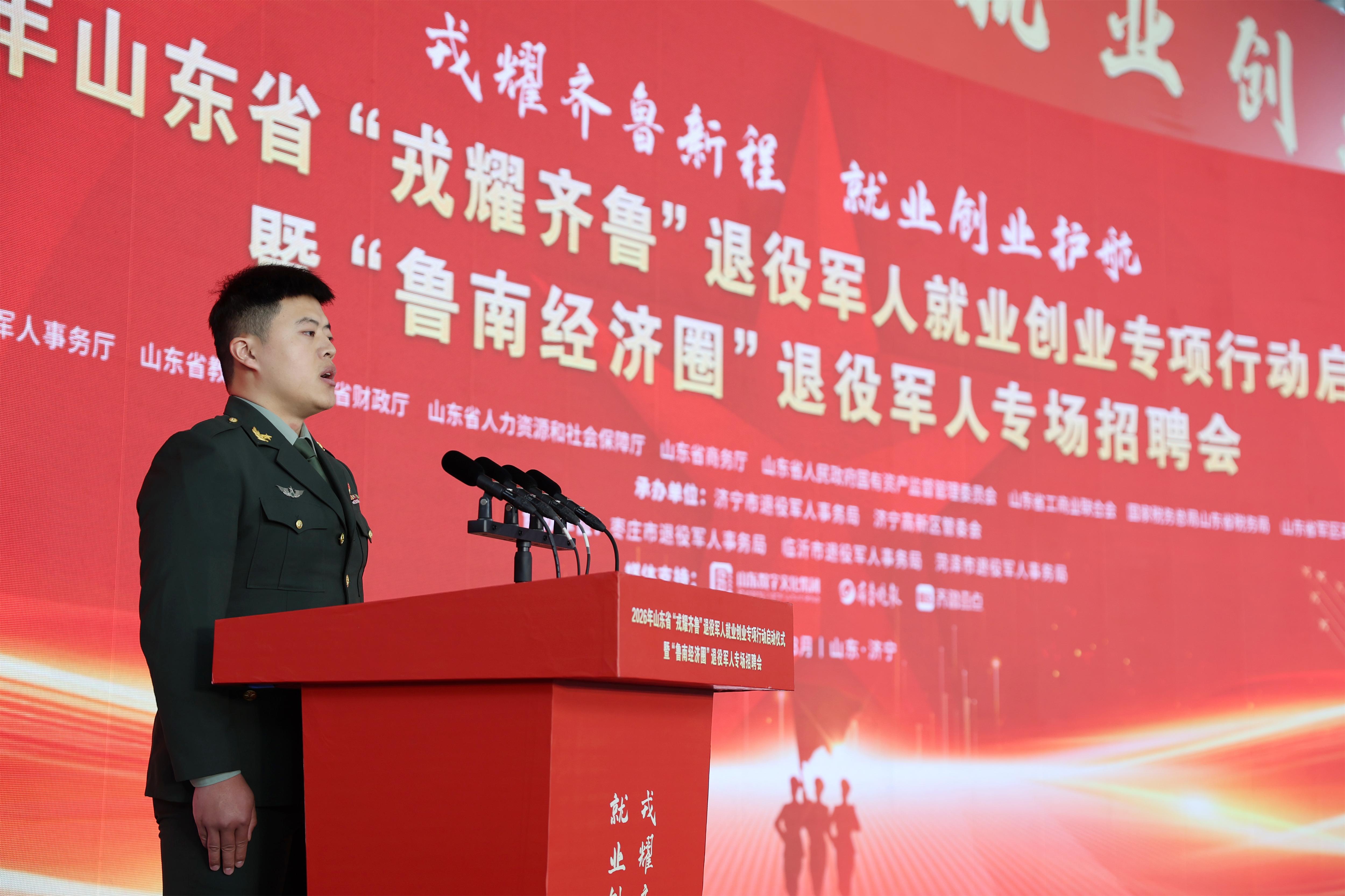 刚刚退役的田龙飞在启动仪式上作代表发言,道出了广大退役战友的心声,也表达了扎根齐鲁、再建新功的坚定信念。
