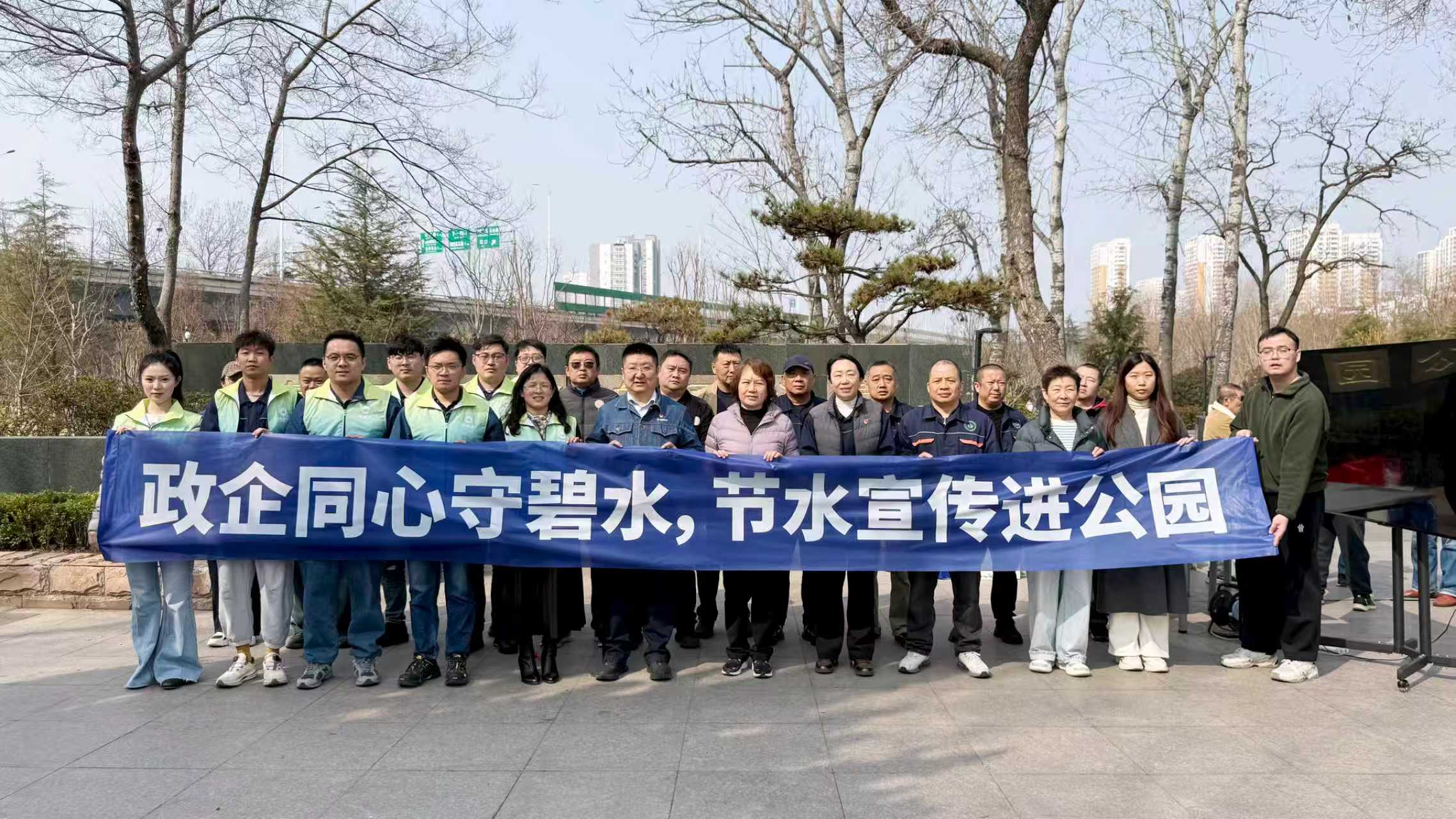 半岛网3月27日讯 (记者 孙贴静 通讯员 刘霞)3月25日,青岛水务集团海湾中水有限公司(以下简称海湾中水公司)联合青岛市生态环境局市北分局、青岛市市级公园管理服务中心、青岛水务集团娄山河水务资源有限公司(以下简称资源公司),在海泊河公园开展第三十九届“中国水周”暨再生水绿化应用标杆公园揭牌主题宣传活动,近30余名党员代表及青年“洗水人”志愿服务者参加。