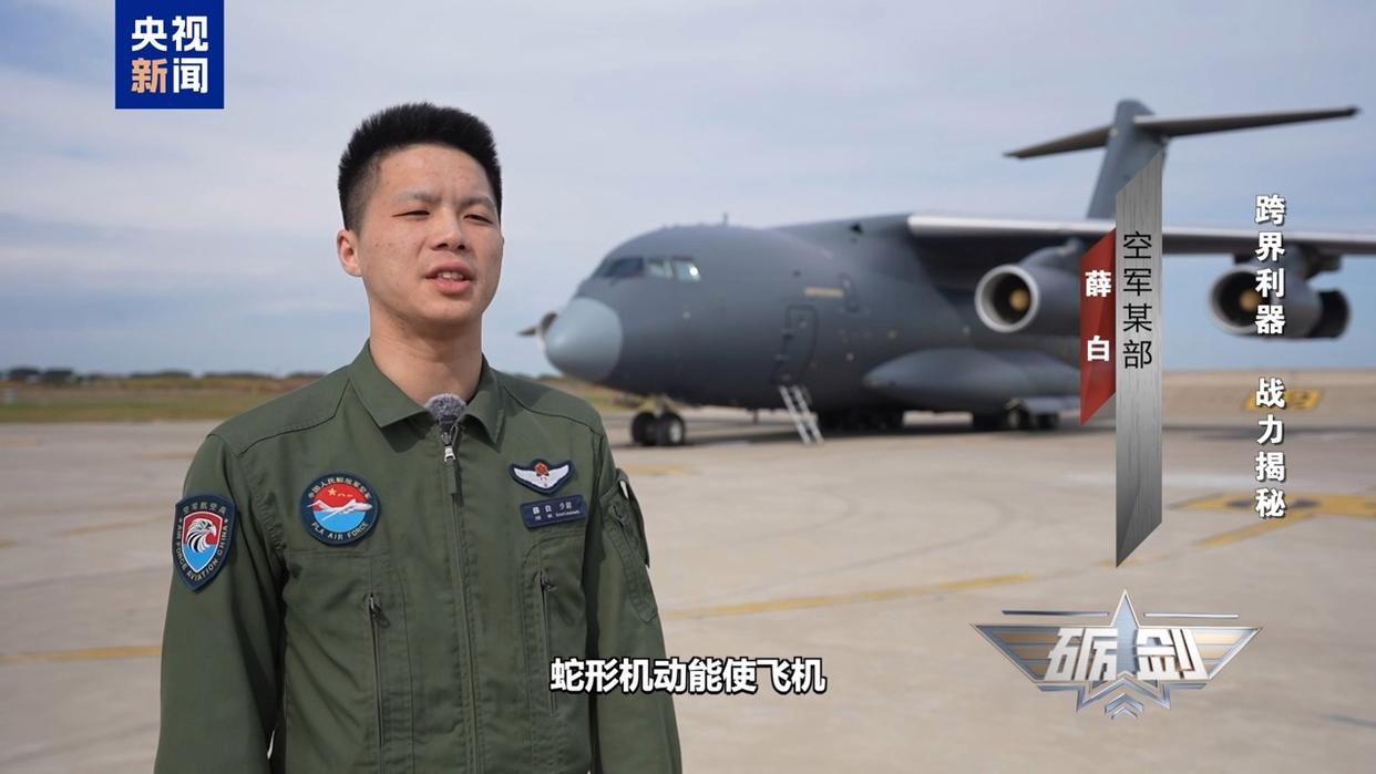 空军某部 薛白:蛇形机动主要难在飞行过程中,飞机需要从左坡度的45°突然变化为右坡度45°,需要飞行员对压盘量有精确控制,同时还要对地面进行观察。蛇形机动能使飞机快速脱离便携防空武器的攻击包线,提高战场生存率。