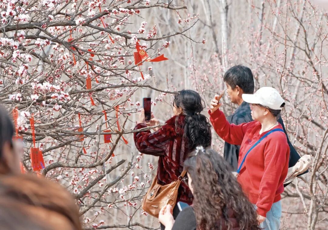 3月22日清晨,叩官镇大旺村周边数公里的道路上,密布的车流源源不断汇入。细细望去,不乏大批来自天津、江苏、青岛等省市的外地车牌,不少游客专程驱车赶来,只为赴这场繁花之约。