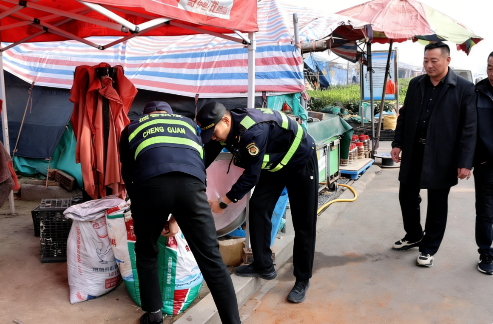 在占道经营治理上,执法人员精准发力、分类施策。一方面,对市场外围、道路两侧擅自摆摊设点的流动摊贩,耐心宣讲城市管理相关规定,引导商户自觉入驻规范经营区域;另一方面,严格落实经营规范要求,全面清理摆放在人行道、车行道上的渔获、货架、电子秤等经营物品,切实打通人行通道与车行道,实现 “还路于民、还路于安全”,让市场周边道路恢复整洁有序。