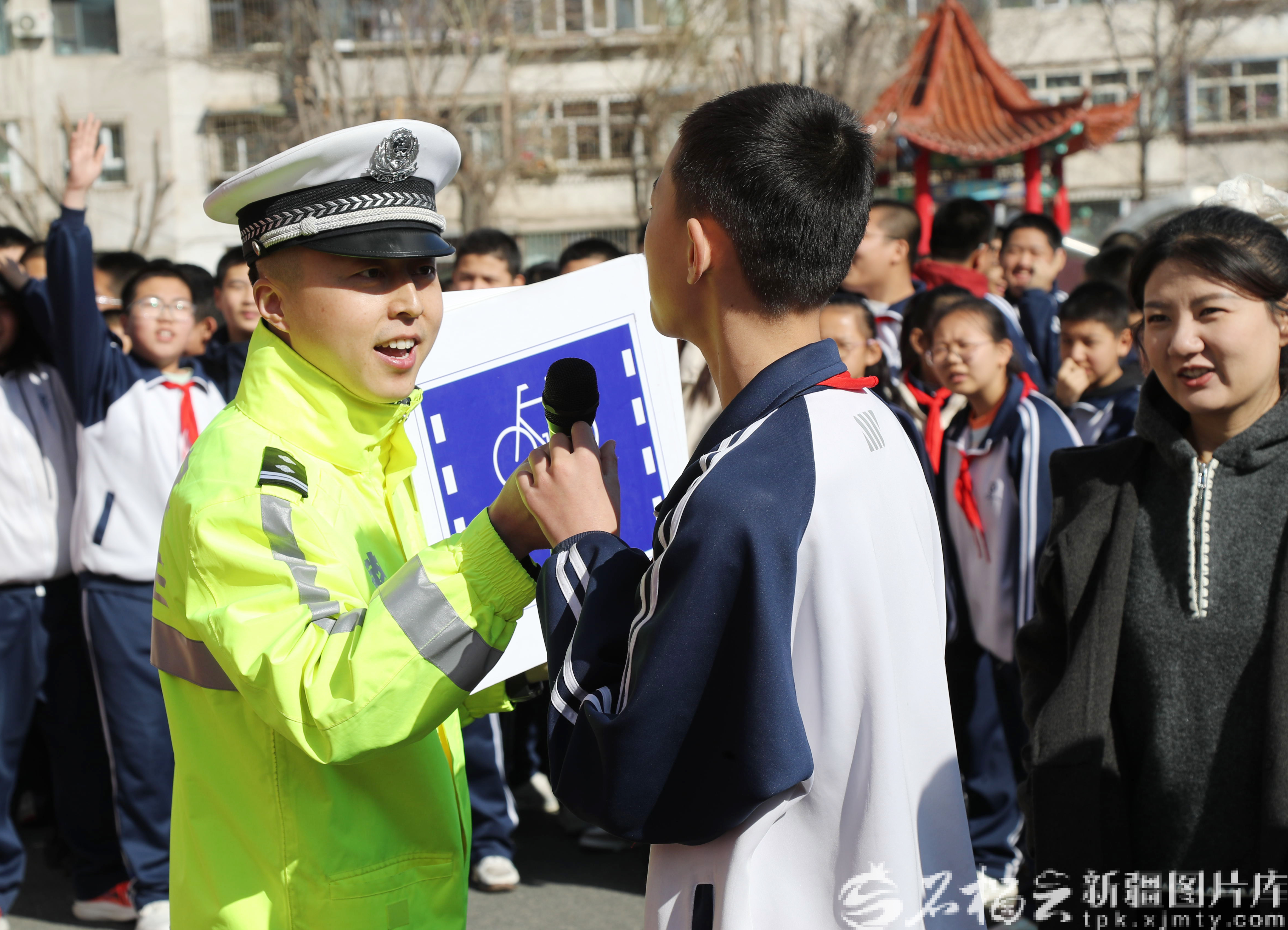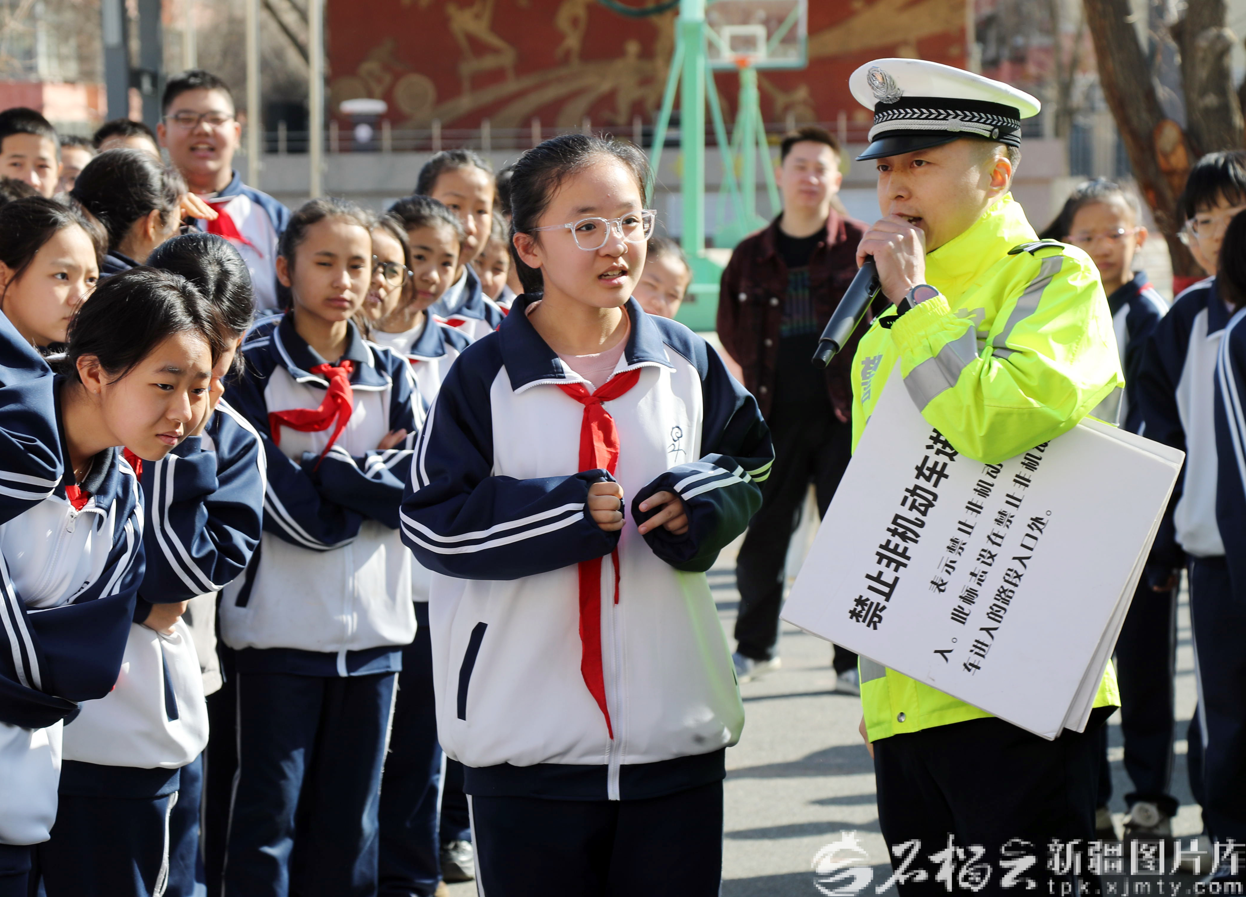 3月26日,交警为学生普及交通安全知识。