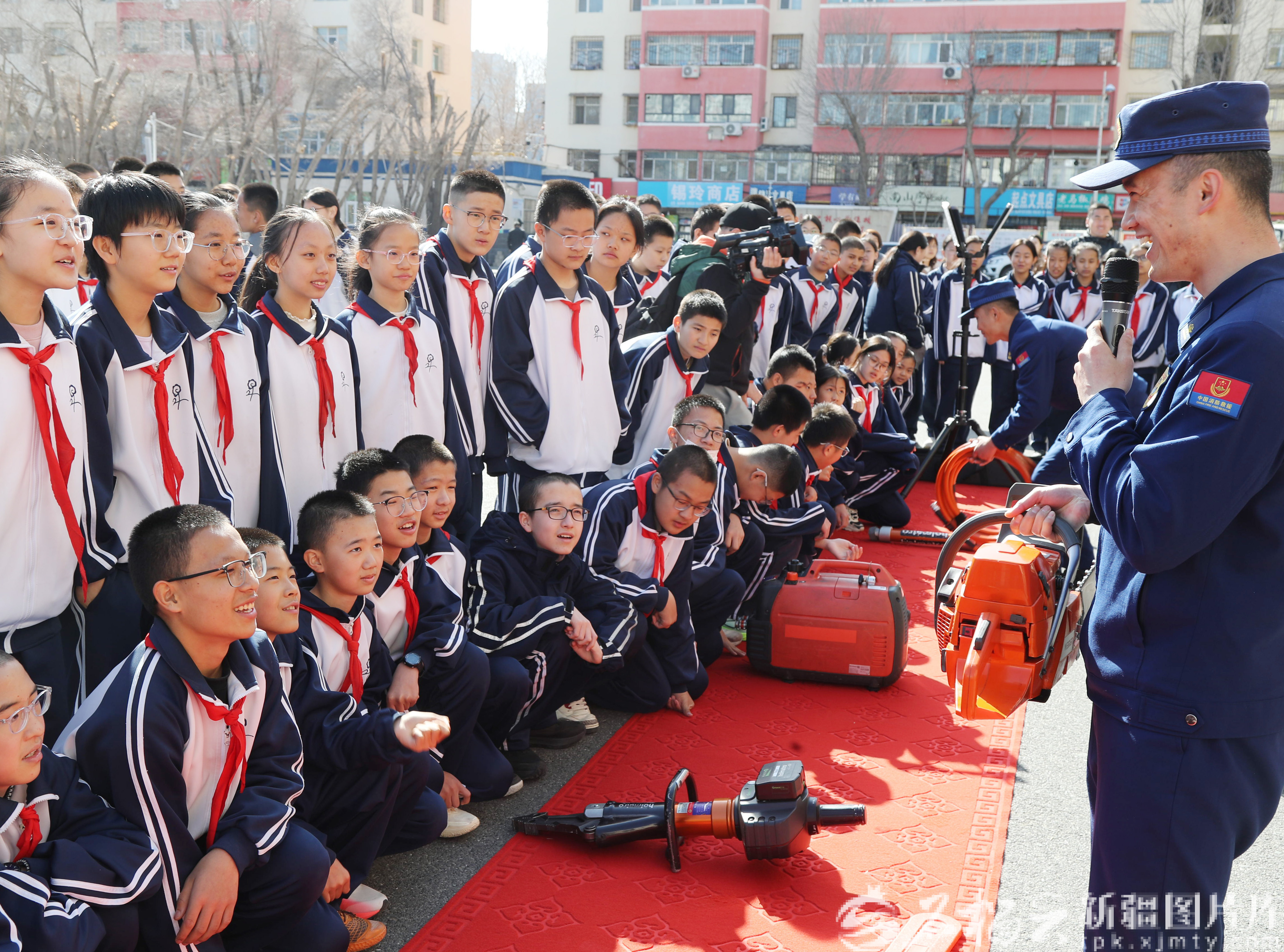 天山网-新疆日报讯(记者李雄心摄影报道) 在全国中小学安全教育日来临之际,为切实提升师生安全素养与应急避险能力,营造平安祥和的校园环境,3月26日,乌鲁木齐消防救援支队新市区大队联合乌鲁木齐高新技术产业开发区(新市区)教育局、乌鲁木齐市公安局交通管理支队高新区(新市区)大队,在乌鲁木齐市第29中学共同举办“守护成长”校园消防安全宣传教育活动,通过“演练+展示+宣讲”的形式,为师生上了一堂生动的安全实践课。
