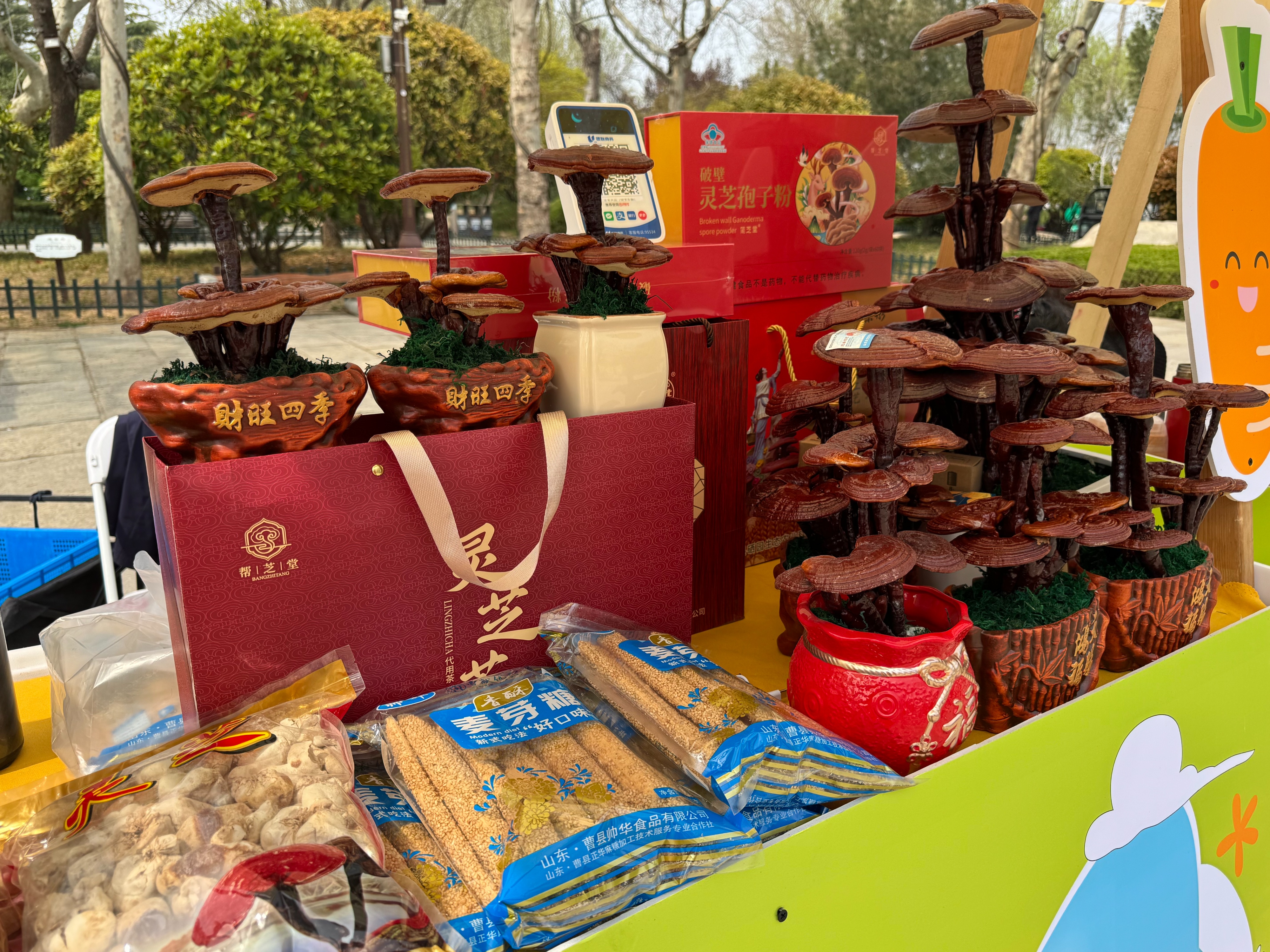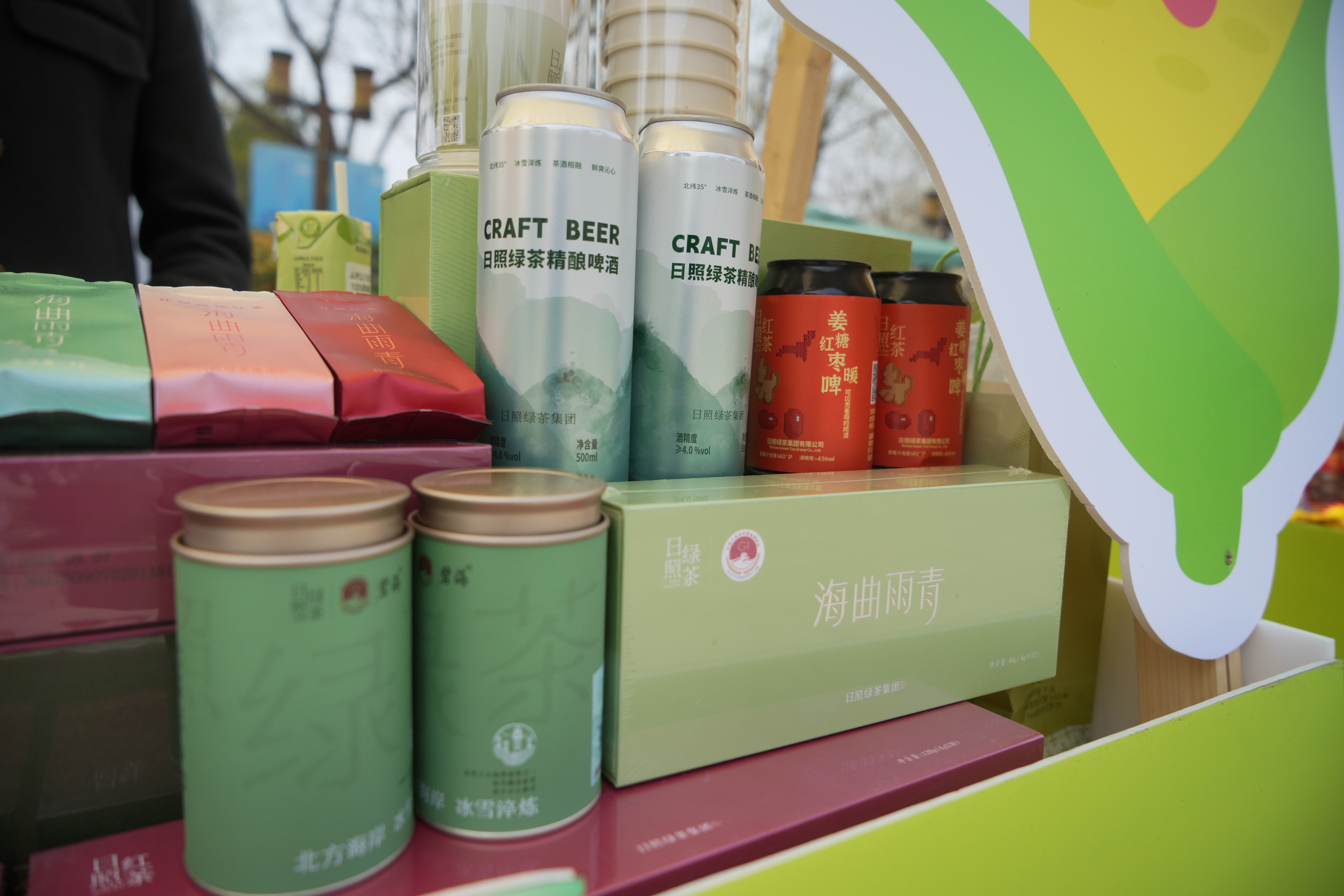 市集中的创新产品同样表现亮眼。日照绿茶集团推出的茶精酿啤酒将日照绿茶与精酿工艺巧妙融合,茶香清雅、口感清爽,吸引众多年轻消费者驻足尝鲜;艾草养生系列产品、蜂蜜系列产品、灵芝孢子粉系列产品则以“国潮养生”概念获得家庭客群青睐,不少人特意为家中长辈选购,将春日健康带回家。此外,精油皂、葱酱、桑叶面等特色产品也各具巧思,备受消费者喜爱。“我们的桑叶面条上午就已经售罄,已经联系明天紧急补货了。”烟台市九顶原乡医养健康产业有限公司栾雪峰表示。