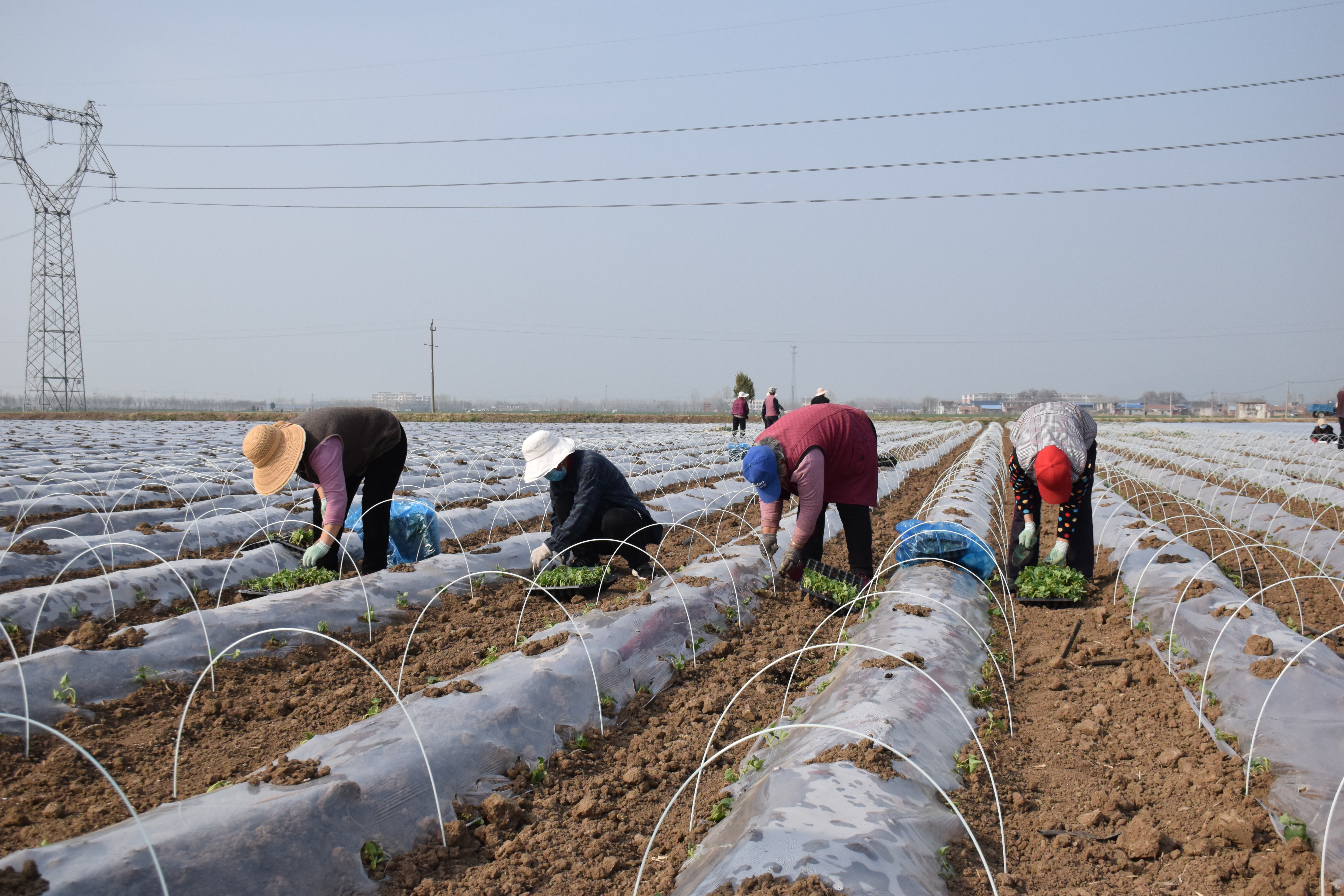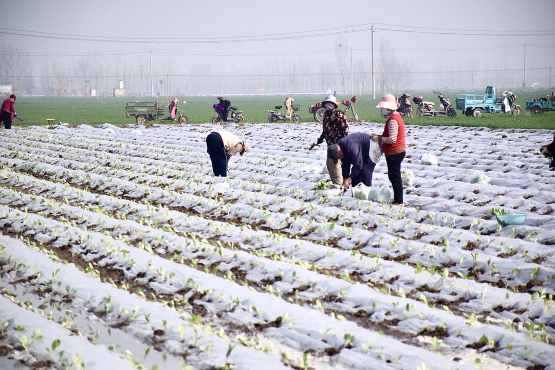 与荷柳村遥相呼应,南街村“两菜一粮”种植基地同样一片繁忙。工人们分工明确、协同发力,有的忙着给土地消毒杀菌,有的细致覆地膜保墒,有的专注搭建小拱棚……田间地头一派热火朝天的景象。据了解,该基地遵循“刀豆、毛豆——玉米——西兰花”的科学种植模式,其中本季毛豆预计亩产能达3000斤左右,刀豆产量更为可观,为丰产增收奠定了坚实基础。