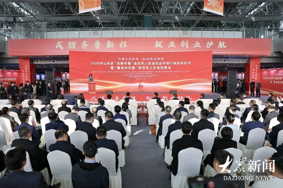 3月27日,2026年山东省“戎耀齐鲁”退役军人就业创业专项行动启动仪式暨“鲁南经济圈”退役军人专场招聘会在济宁市举办。