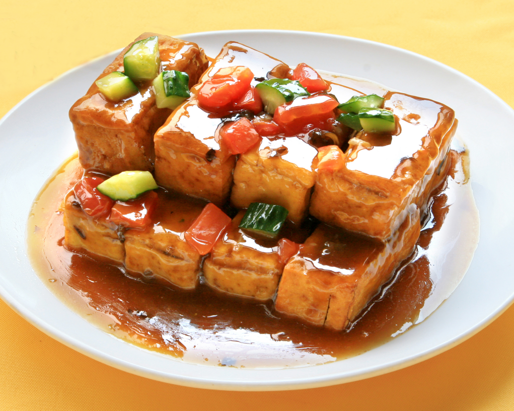 你以为豆制品只能当配菜?看看淄博的豆腐箱子,把豆腐炸得外皮金黄,然后在顶上切一刀,像开箱子一样把里面的嫩豆腐挖出来,填进去精心调制的馅料,再把“盖子”盖上,上笼蒸透。
