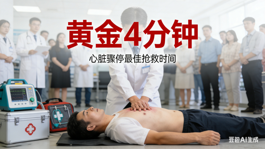 若身边有人突发心脏骤停,务必当机立断,迅速将患者移至硬板床平卧,立即实施心肺复苏(CPR)和自动体外除颤(AED)。牢牢抓住抢救的 “黄金4分钟”。施救越及时,复苏成功率越高。