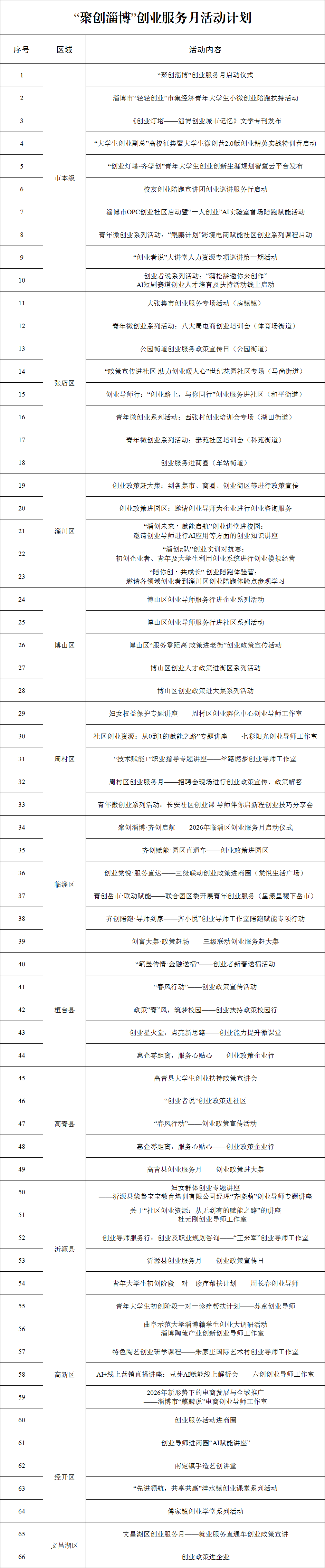 66场!“聚创淄博”创业服务月活动计划来了