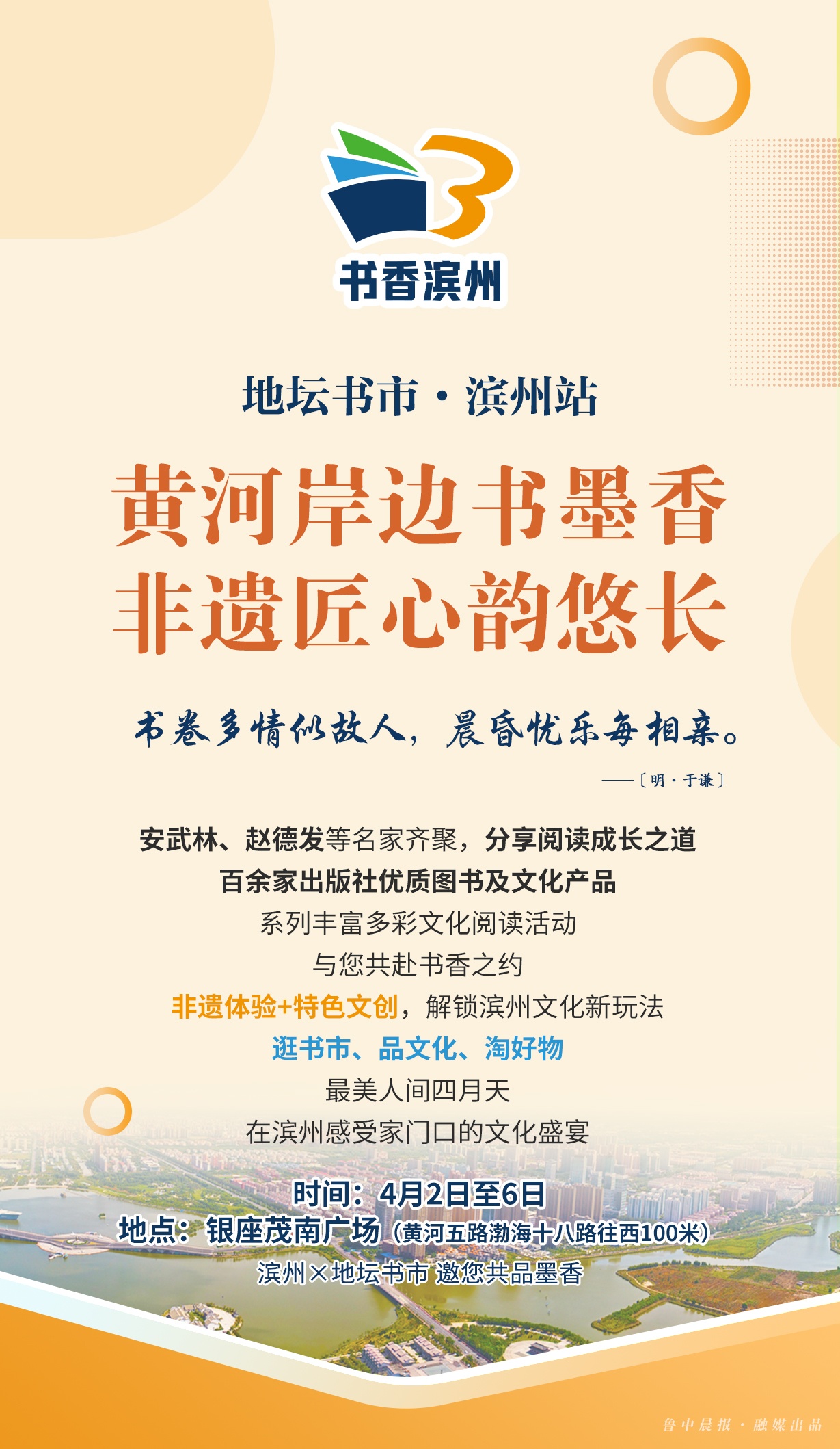 4月2日-6日,地坛书市进滨州暨"书香滨州·全民阅读"主题活动将在银座茂南广场盛大开启。