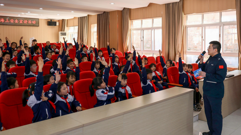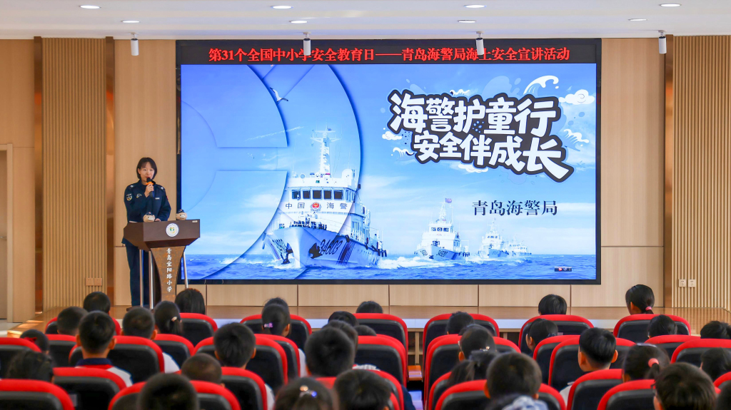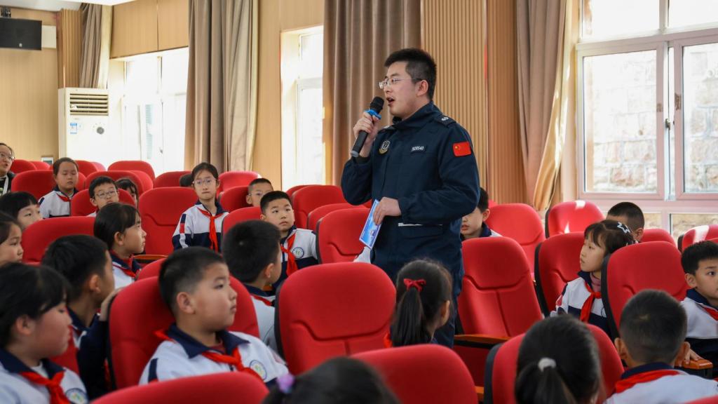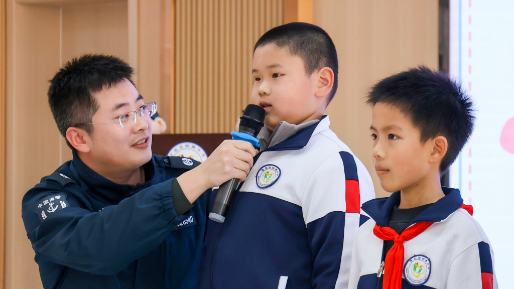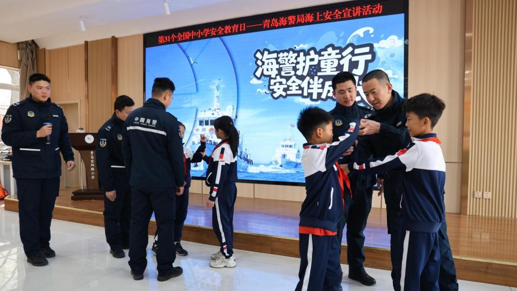 春风送暖,法治润心。在第31个全国中小学生安全教育日来临之际,山东青岛海警局组织执法员走进青岛宜阳路小学,开展“海警护童行 安全伴成长”海上安全宣讲活动。活动通过普法宣讲、互动问答、装备展示、技能展演等沉浸式形式,将法治理念与安全知识送到学生们身边,进一步增强少年儿童安全防范意识和自我保护能力。