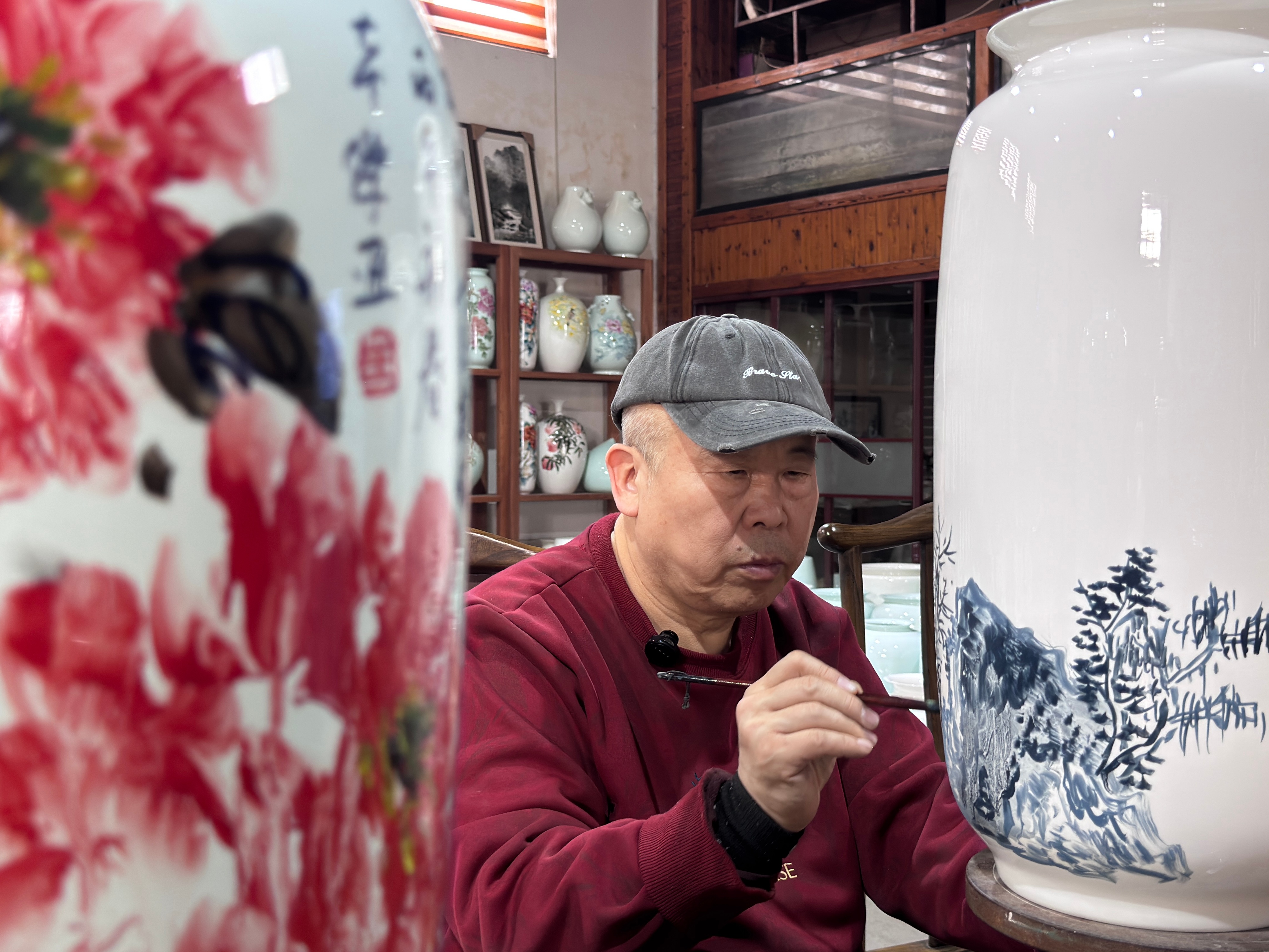 在瓷瓶上写写画画,是许多博山人最熟悉的事。