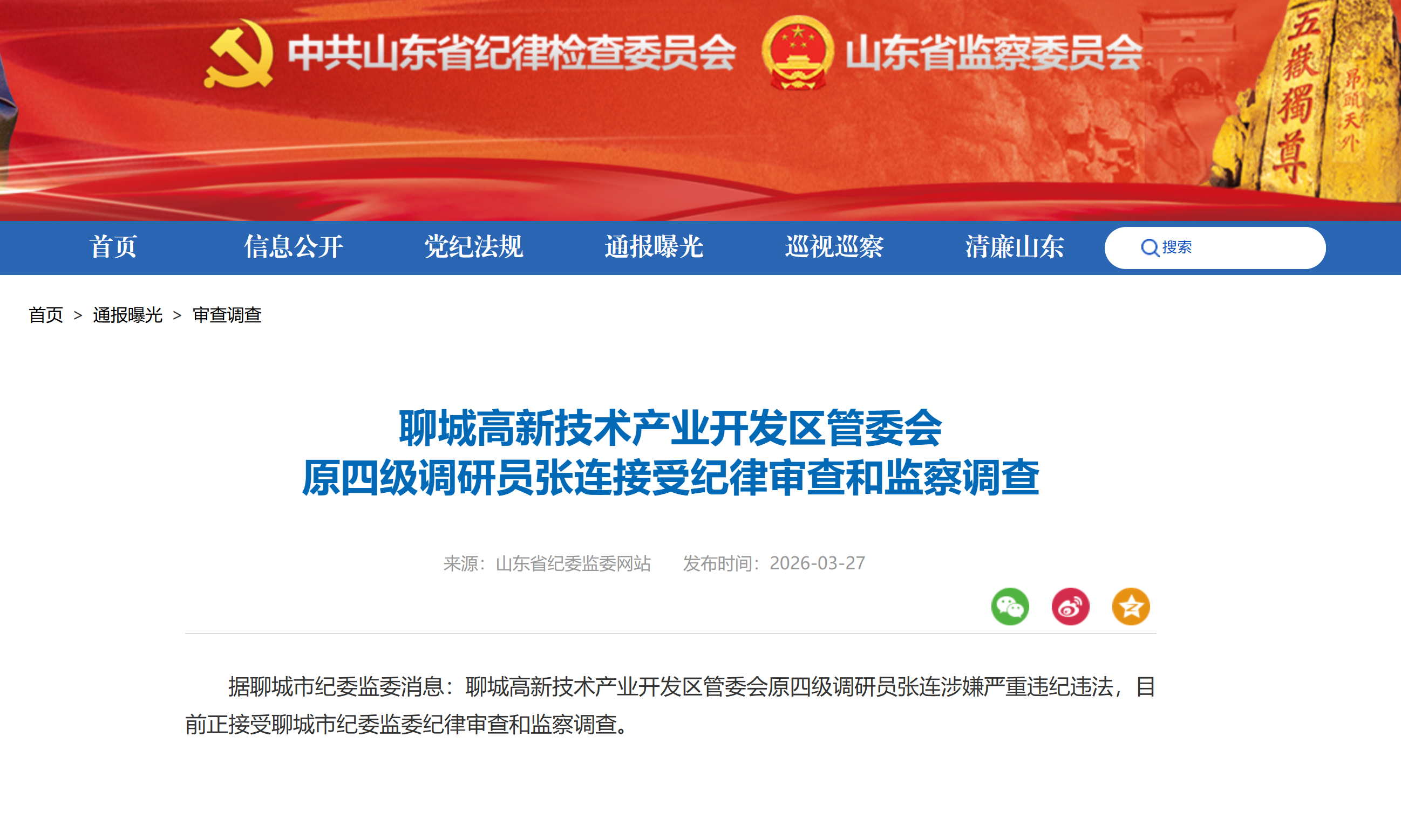 山东省纪委监委网站3月27日消息,聊城高新技术产业开发区管委会原四级调研员张连涉嫌严重违纪违法,目前正接受聊城市纪委监委纪律审查和监察调查。