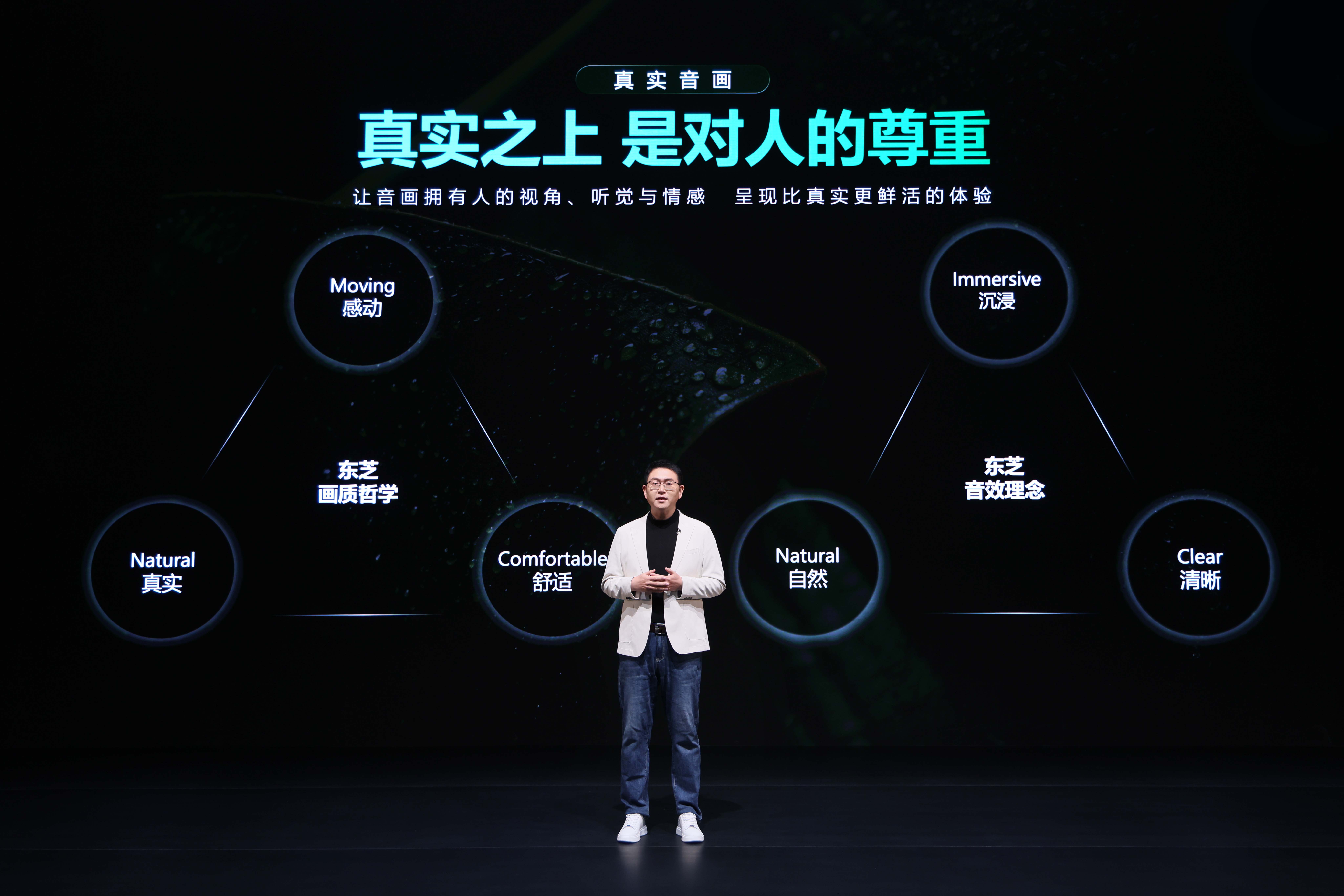在画质系统上,东芝确立真实还原、视觉舒适、沉浸感动三大技术坐标——精准复现自然色彩与创作者意图,优化显示参数匹配人眼生理节律,消除屏幕边界感实现深度沉浸。在音频系统上,东芝构建沉浸声场、自然延展、清晰解析三维度量——构建360°全维声学空间,保证全频段声源准确还原,强化不同内容的细节呈现。