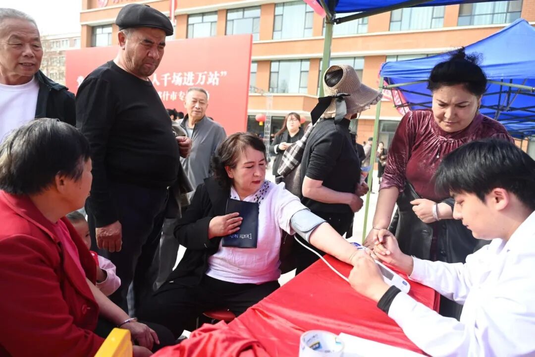 活动现场血压检查公益义诊。喀什地区融媒体中心 记者陈朝 摄
