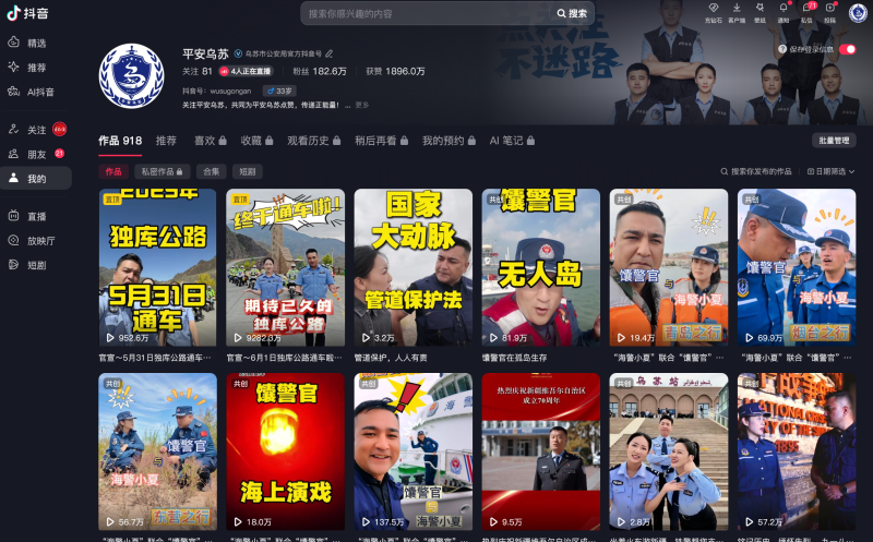 乌苏市公安局官方抖音,百万粉丝汇聚,展现平安乌苏守护力量。乌苏市公安局供图
