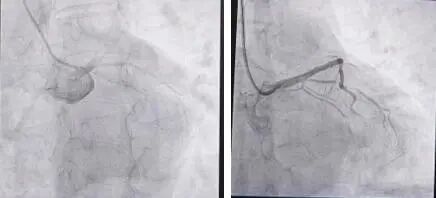 赵先生的救治过程远比想象中曲折。首根导丝尝试多次均未能通过闭塞病变,最终在微导管辅助下穿过闭塞部位。但急性血栓堵塞了血管,球囊扩张后血管仍无血流通过,陈晨立即采取刺破球囊冠脉内给药、血栓抽吸等一系列操作,终于看到远端血管显影,随后在前降支近段植入支架,复查显示整个血管血流通畅,第一步救援宣告成功。
