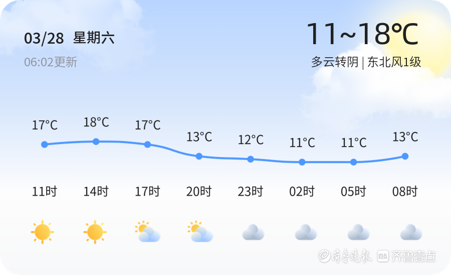 今天是3月28日,星期六,农历二月初十。烟台市今日天气为多云转阴,气温在11℃至18℃之间,东北风1级,空气湿度33%,PM2.5指数为59,空气质量状况良好。市民出行时请注意携带雨具,以备不时之需。由于天气较为阴沉,建议市民适当增加衣物,避免着凉。此外,良好的空气质量适合户外活动,但因风力较小,建议敏感人群仍需关注天气变化。