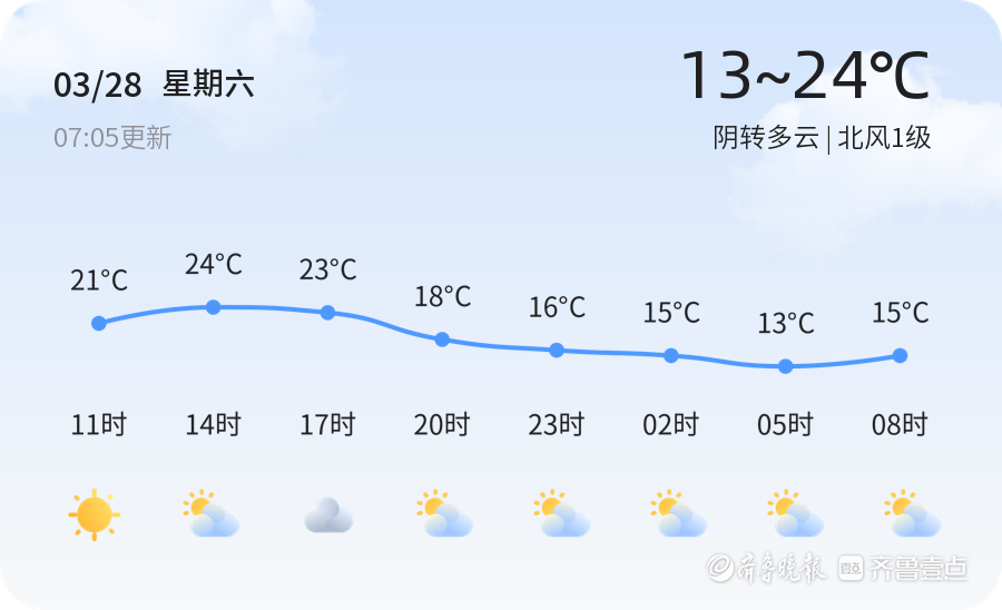 今日是3月28日,星期六,农历二月初十。淄博市天气阴转多云,温度在13℃至24℃之间,北风1级,空气湿度82%。PM2.5浓度为116,属于轻度污染,敏感人群应减少外出或做好防护措施。市民出行建议携带雨具,注意防风保暖。未来三天,淄博市天气趋势为阴转多云,气温波动较大,3月30日最低气温降至8℃,市民需及时添衣。特殊天气如大风时,建议减少户外活动,注意安全。在此提醒市民关注天气变化,合理安排出行计划,注意身体健康。未来七天,淄博市天气以阴雨为主,气温总体适中。市民应根据天气情况适时增减衣物,保持良好作息。总体来看,本周天气多变,建议市民出行前查看天气预报,做好准备。