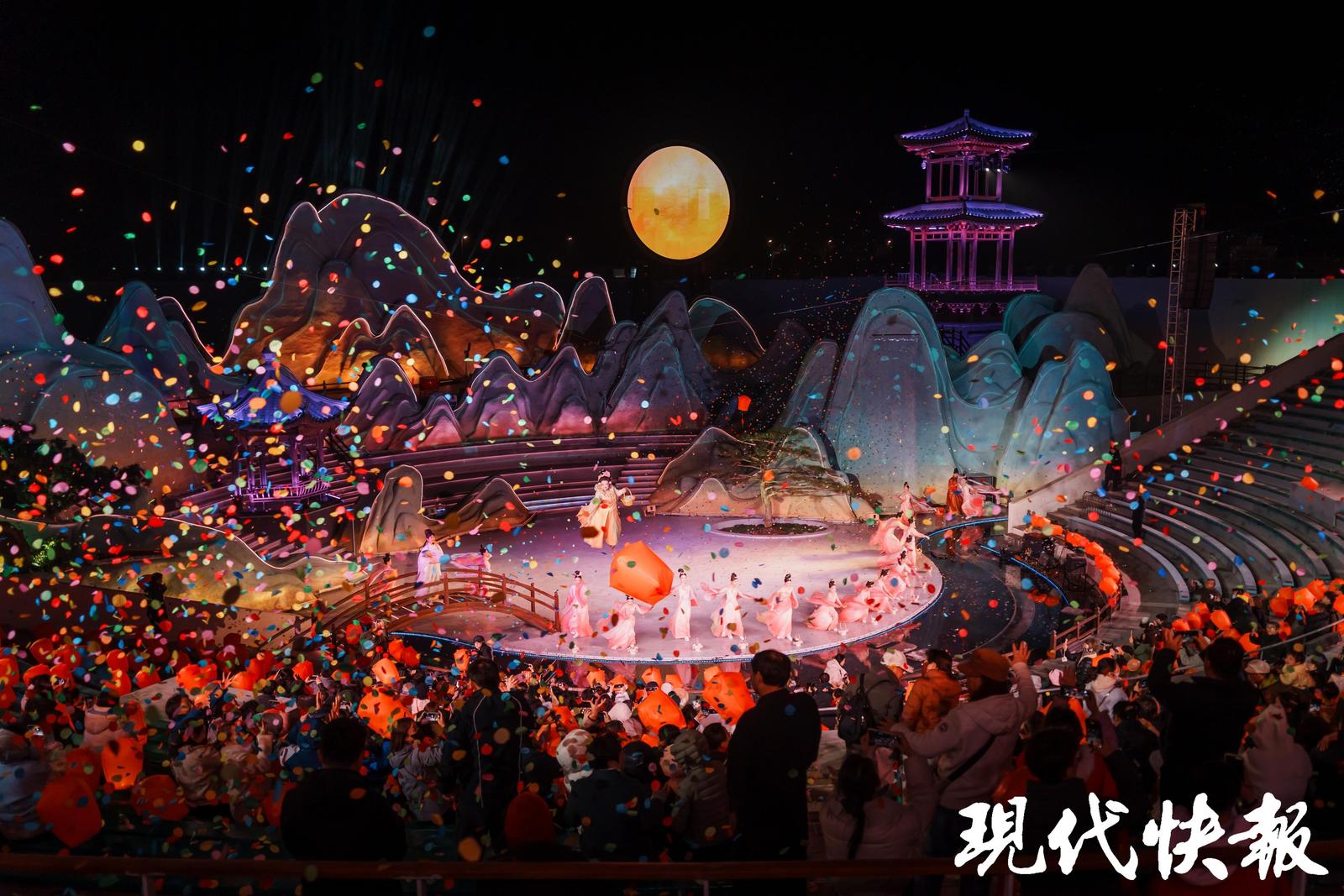 与此同时,一部以王维为主角的沉浸式舞台剧即将在花海许愿广场启幕,通过戏剧、舞美、打铁花与数字艺术交融,带领观众步入诗画相融的东方意境。《禅行》《花开五叶》等经典演艺,融合水幕、光影、全息投影等前沿科技,让禅文化从意境感悟升级为沉浸式体验,成为全国夜间经济与实景演艺的标杆范本。