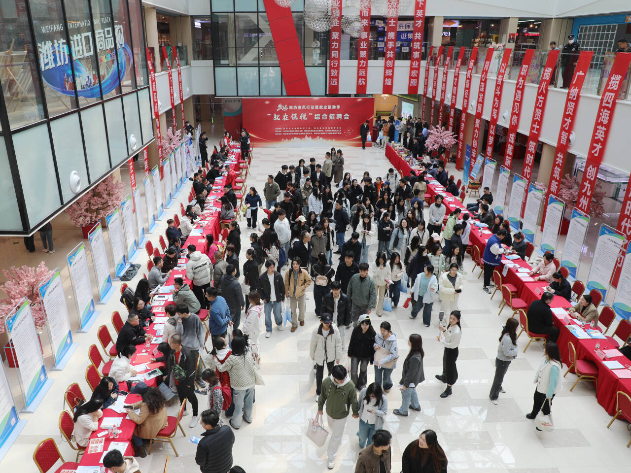 据了解,这是由潍坊综合保税区党工委、管委会主办的2026年潍坊春风行动暨就业援助季“就在保税”综合招聘会,共设置招聘岗位1400余个。