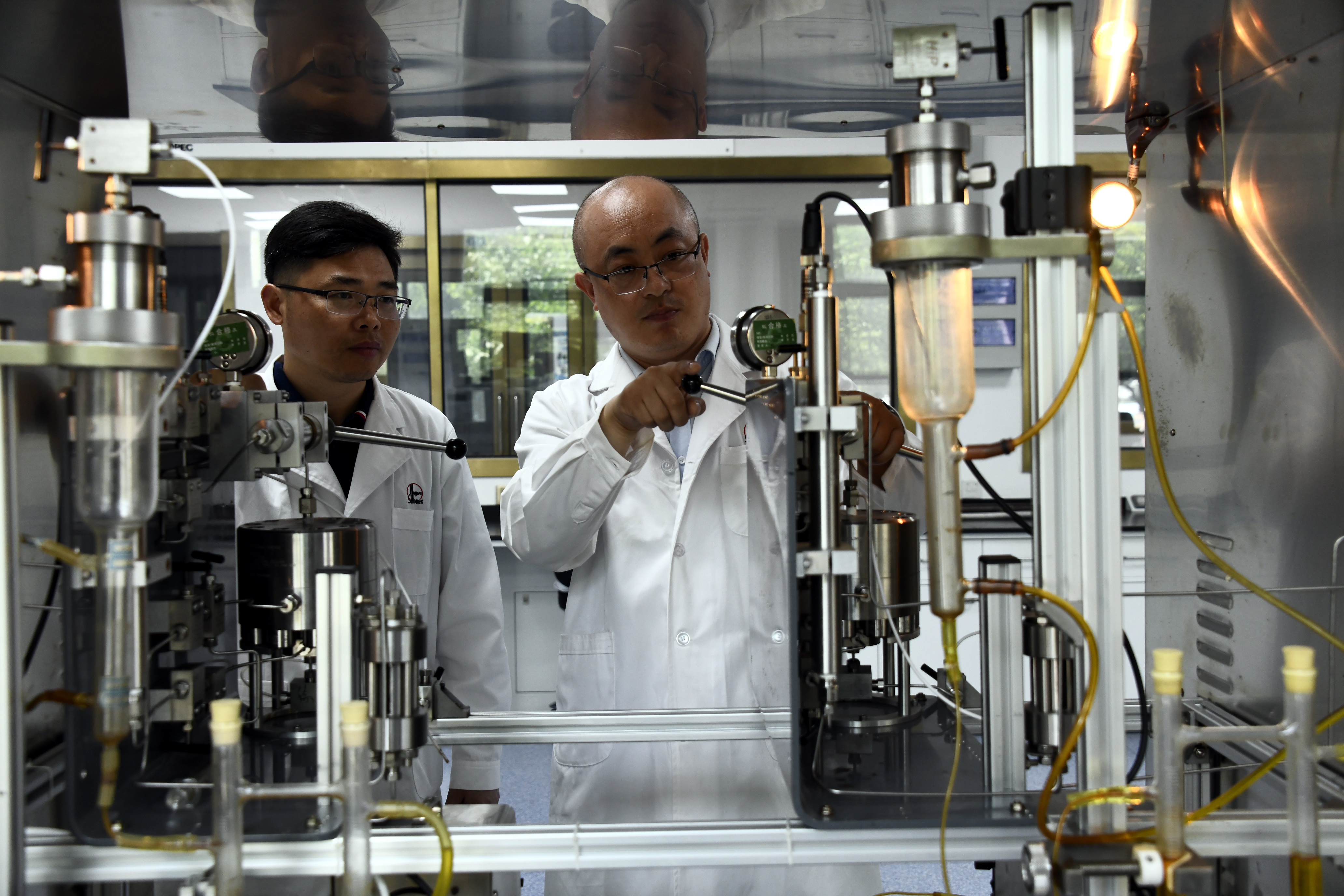 胜利油田CCUS攻关团队开展二氧化碳驱油与封存物理模拟实验。通讯员 朱克民 摄
