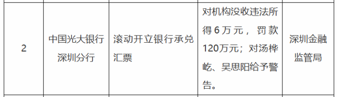 光大银行深圳分行被罚没126万元,因滚动开立银行承兑汇票