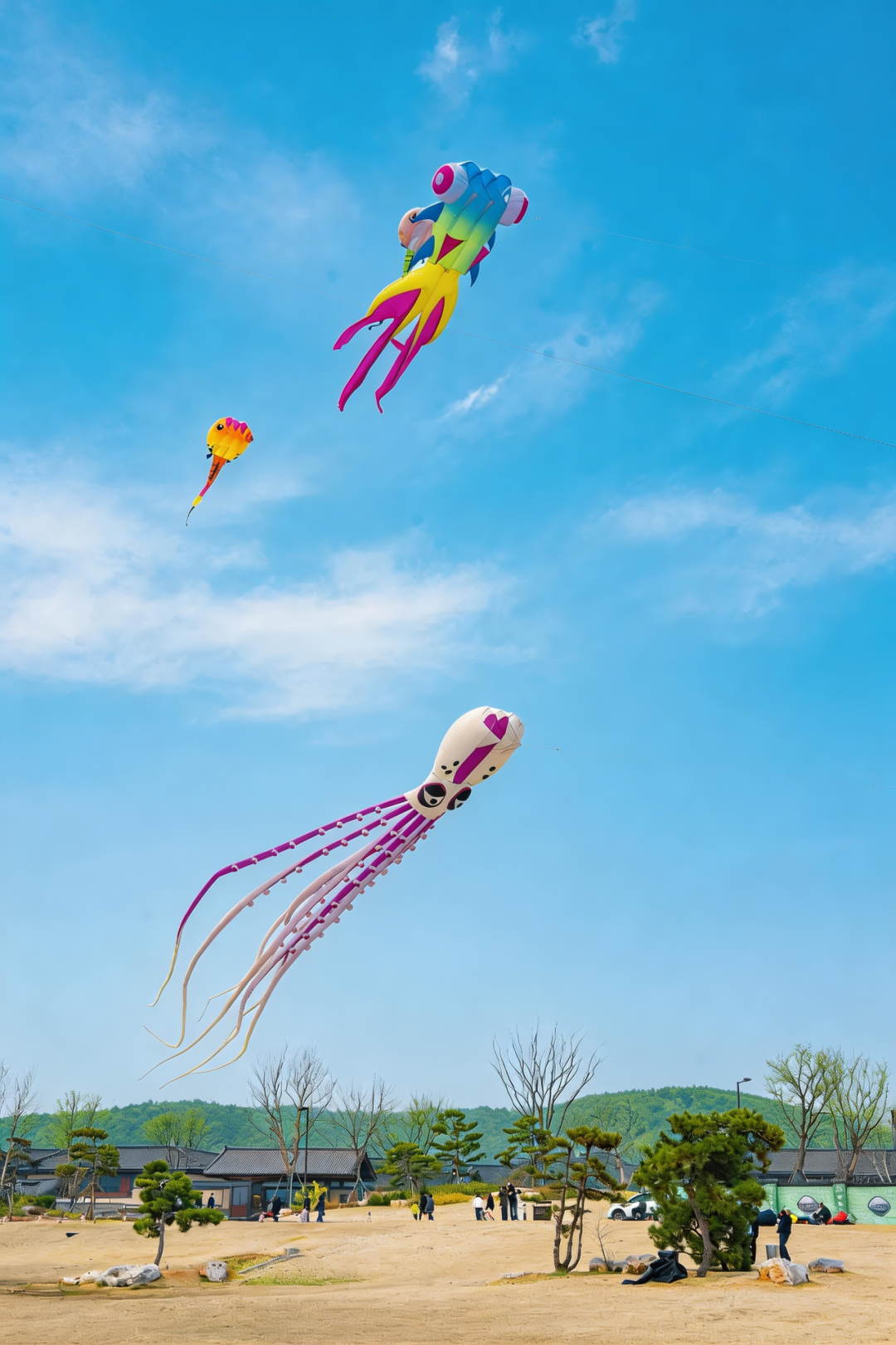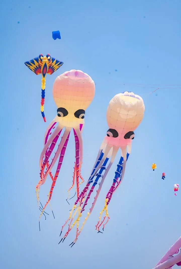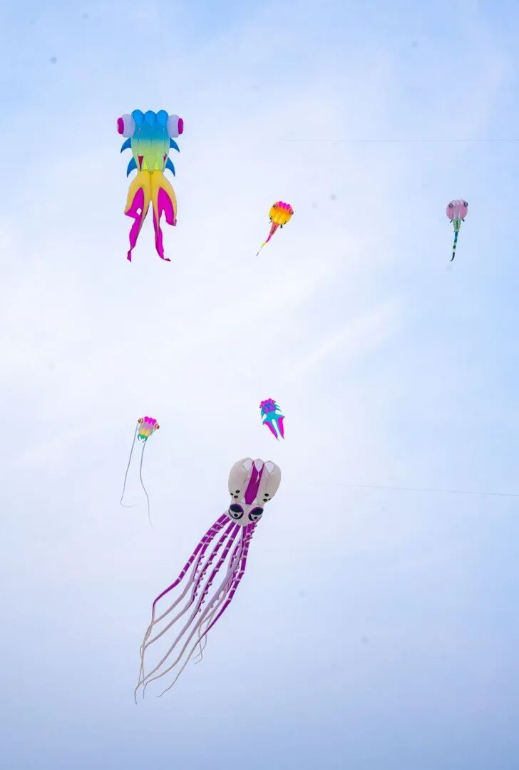 见过三层楼高的章鱼在天上飞吗?见过鲸鱼在云朵里游泳吗?每天两场巨型软体风筝专业放飞表演,章鱼、鲸鱼、龙形风筝……一个个庞然大物腾空而起,视觉冲击力MAX!站在草坪上仰望,仿佛闯入宫崎骏的童话世界。这一刻,你只需要张开双臂,感受风吹过耳畔,心也跟着飞向了高空。