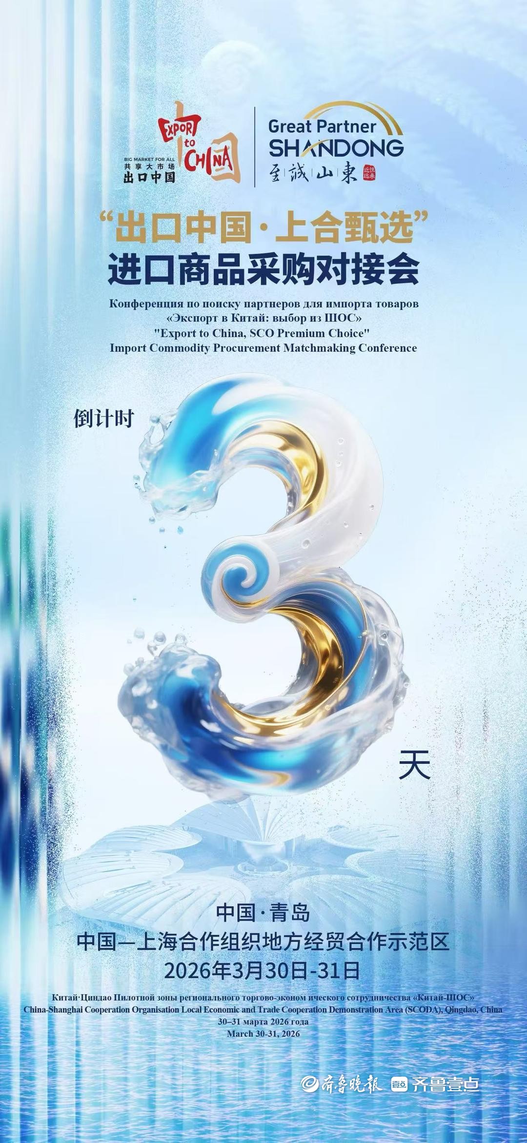 2026年3月30日-31日,“出口中国・上合甄选”采购对接会将在青岛上合之珠国际博览中心举办,以扩大进口为抓手,为上合组织国家优质商品进入中国市场提供便捷通道。