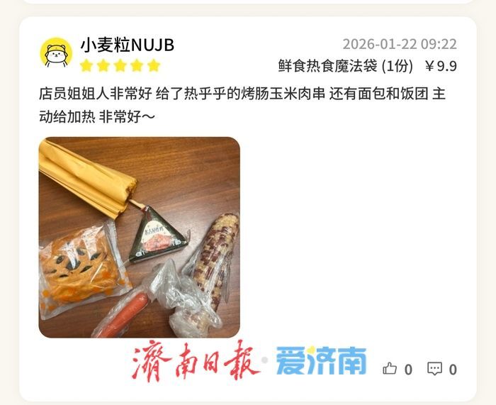 在社交平台上,关于“剩菜盲盒”的讨论热度持续攀升。济南市民蔡女士最近也开始关注这种消费方式。她告诉记者,自己第一次尝试是在同事推荐下,花12.9元买了一份面包店的盲盒,拿到手是三个面包,原价加起来超过40元。“花不到一半的钱买到这么多东西,感觉挺值的。”蔡女士说,她现在每周会买一到两次,主要选烘焙类的盲盒。