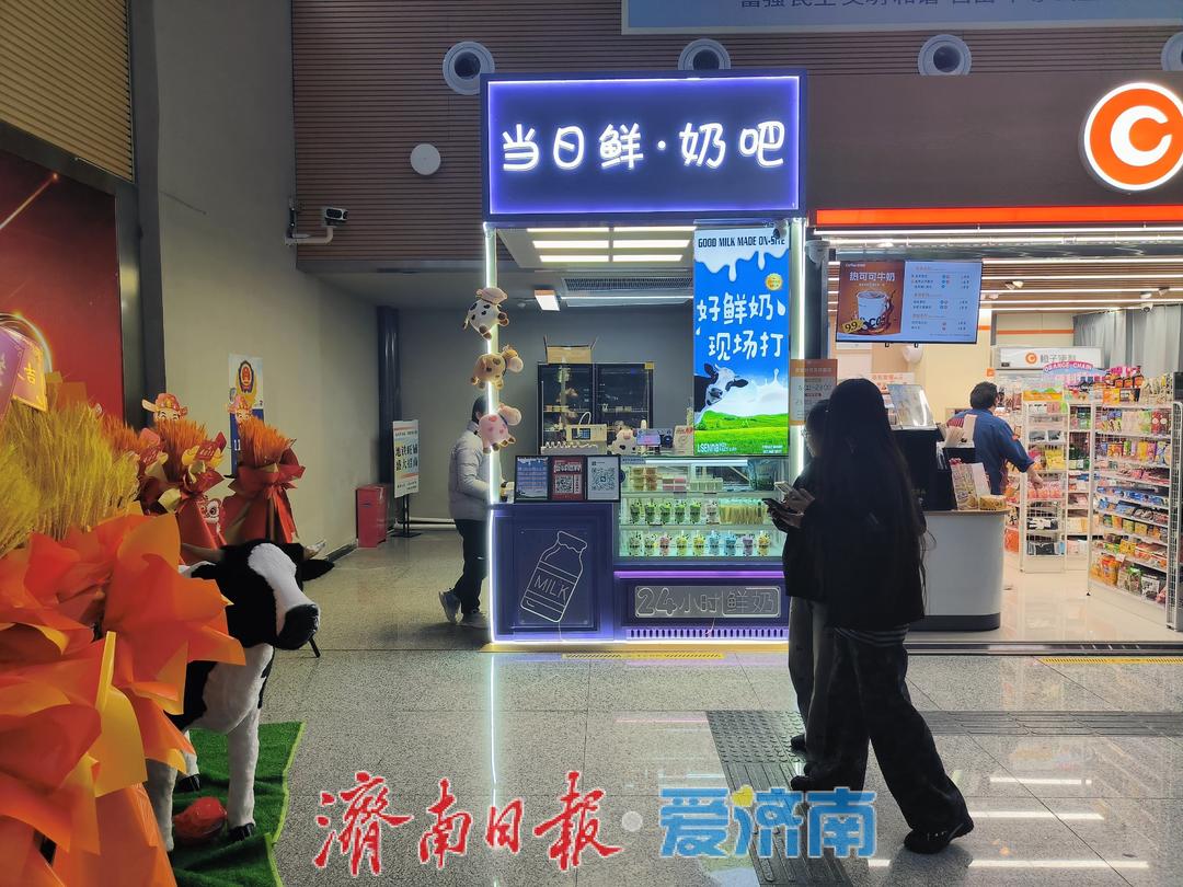 4号线泉城公园站C口新开当日鲜·奶吧。各种新鲜鲜奶、暖心甜品,将为乘客提供健康轻食的新选择,近期来泉城公园踏青赏春的乘客莫要错过。