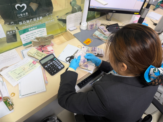 客服经理立即引导客户至窗口,逐枚清点、分类整理、封装打包。经过十分钟细致工作,高效完成全部零钱清点与入账,累计金额近一万五千元。
