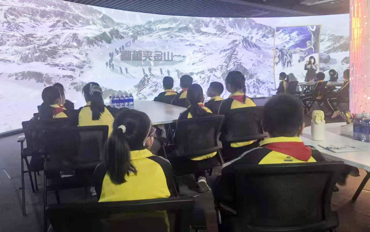 在沉浸式党性教育馆内,党员教师们体验了一段“红色之旅”。依托5G高新视频技术,大家置身全息影像构建的历史场景,从峥嵘岁月到新时代,在沉浸式体验中回顾党的光辉历程。