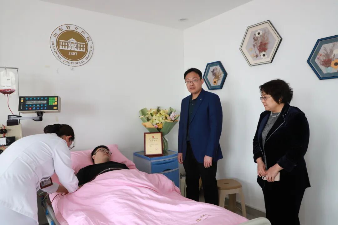 3月26日上午,济南市第五人民医院党委书记安健、专职党委副书记李洁月前往医院慰问鼓励正在捐献的刘泽正医生,表示医院是他最坚实的后盾,会全力做好保障工作,为他提供全方位的支持与关怀,他无私奉献,勇于担当,也将成为全院职工学习的榜样。