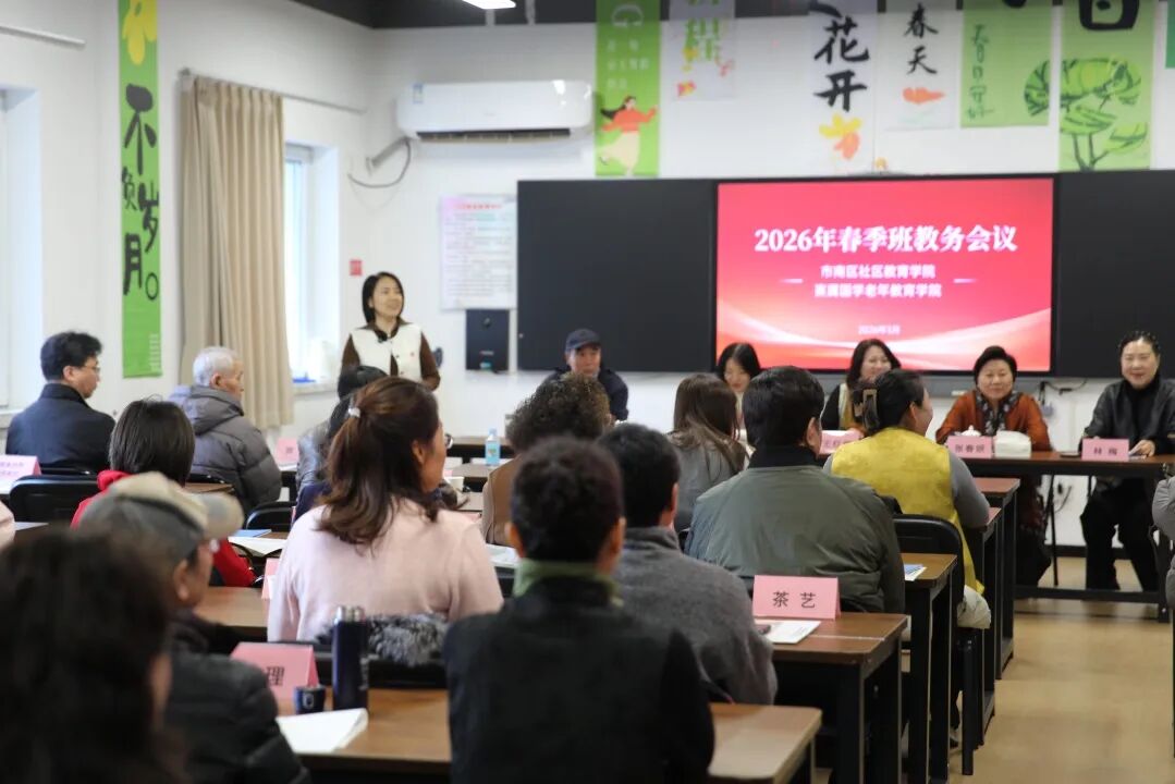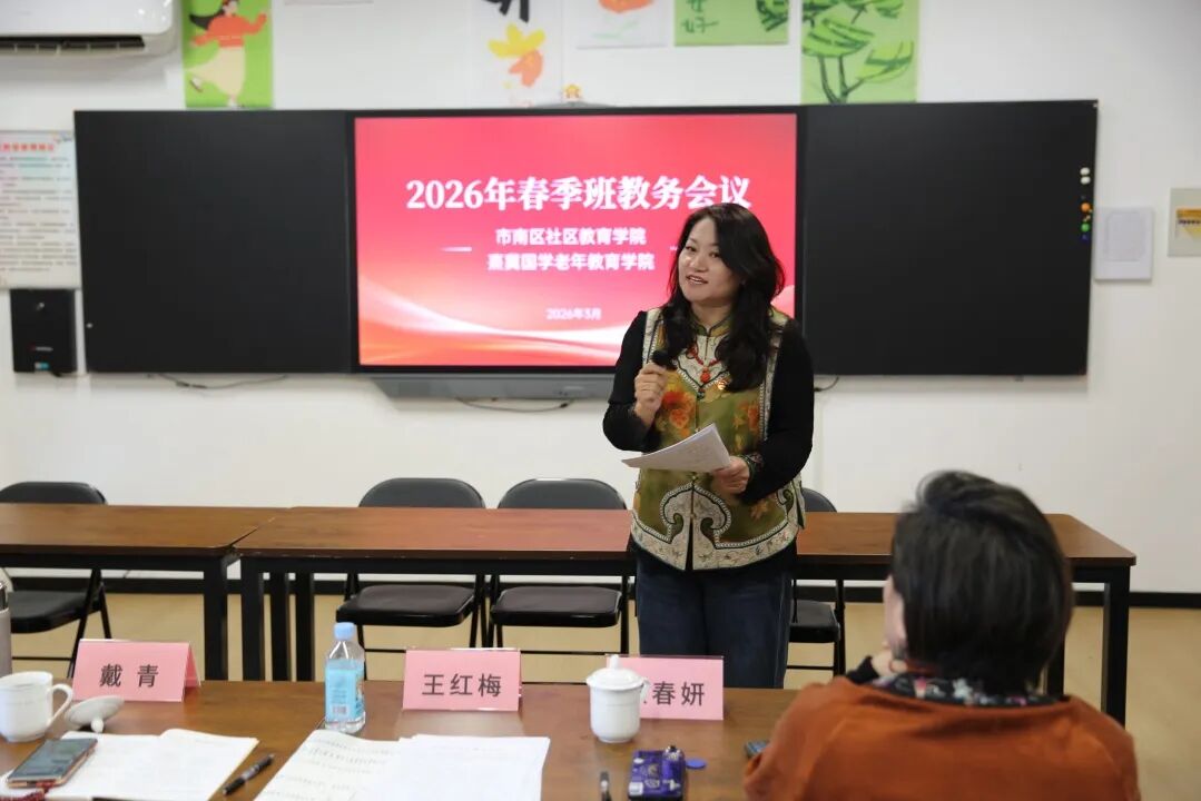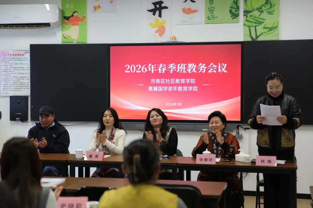 为深入贯彻《教育强国建设规划纲要(2024—2035年)》《关于推进新时代山东省社区教育高质量发展的意见》及青岛市老年友好型社区建设工作要求,推动社区教育公益普惠、高质量发展,近日,青岛市南区社区教育学院与熹冀教育2026年春季班教务会在熹冀国学老年教育学院市南院区召开。市南区社区教育办公室、社区教育学院及熹冀教育相关负责人、全体教师与助教参会,共同部署春季学期教学工作,标志着市南区社区教育学院与熹冀教育深度合作全面落地。