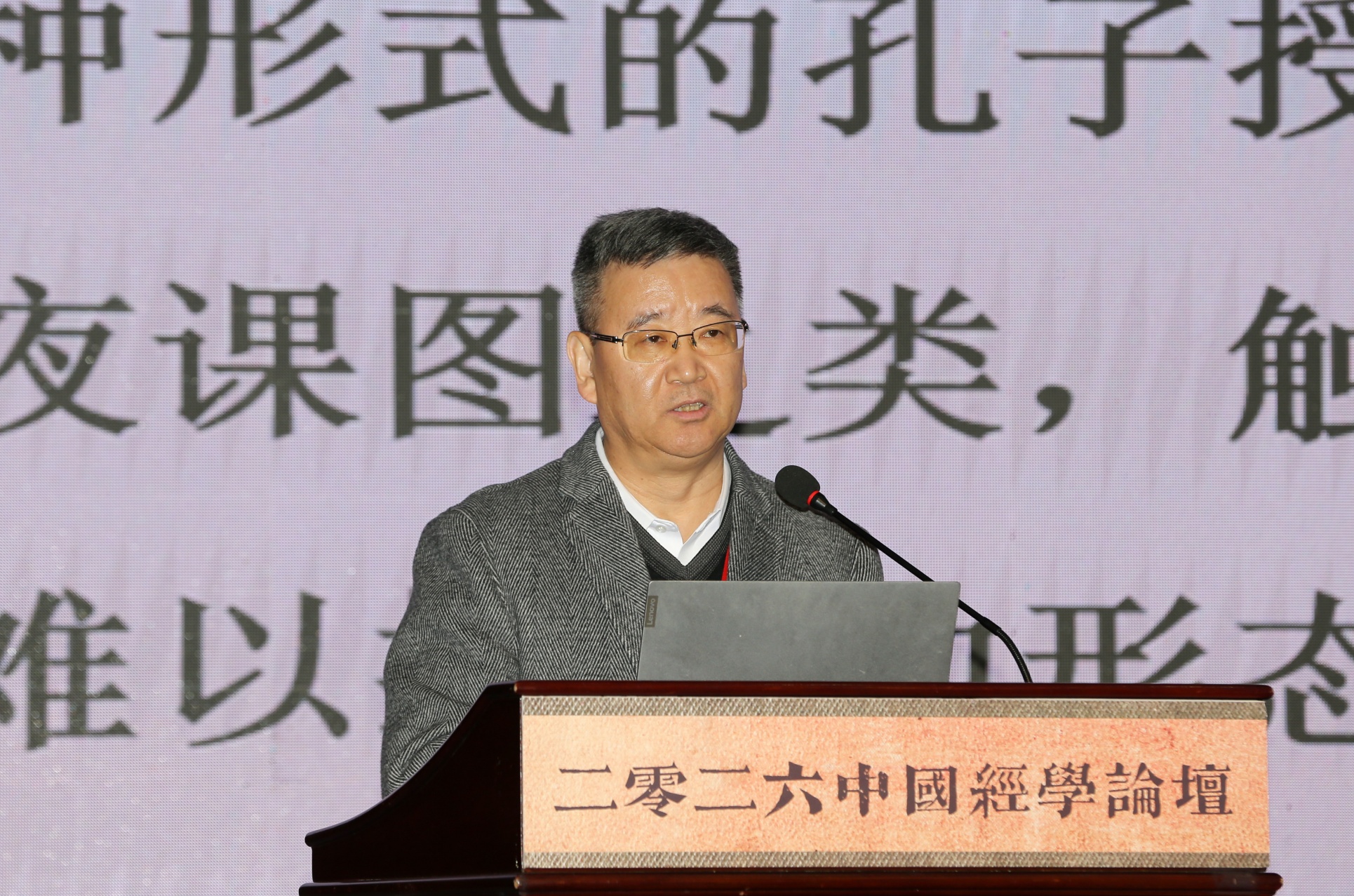 会议主题报告环节由孔子研究院党委副书记、院长孔德立研究员主持。山东大学文学院教授赵生群,浙江大学马一浮书院教授虞万里,深圳大学人文学院教授景海峰,山东大学儒学高等研究院特聘教授杨朝明,南京大学文学院教授徐兴无,孔子研究院特聘研究员、经学与儒家文献研究中心主任、清华大学历史系教授方朝晖,北京大学中文系教授漆永祥、北京大学中文系教授常森等八位专家分别以《〈左传〉疑义续证》《段玉裁汉读三分理论的萌发与建立——兼论稿抄本〈说文解字读〉的性质与抄写时间》《朱子与“四书”系统的建构》《〈礼运〉篇的解读偏差与经学研究的当代反思》《谶纬与东汉的改历——以〈春秋命历序〉为中心》《论慎独的“慎”》《〈惠氏四世传经图〉考论》《早期〈诗经〉学“颂”名不指“舞容”证说》为题作学术报告。