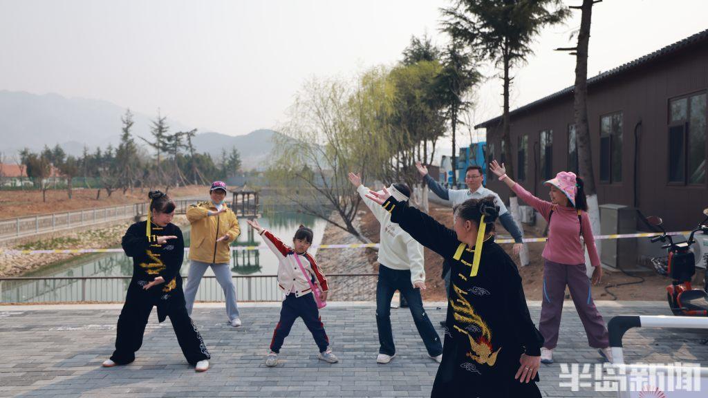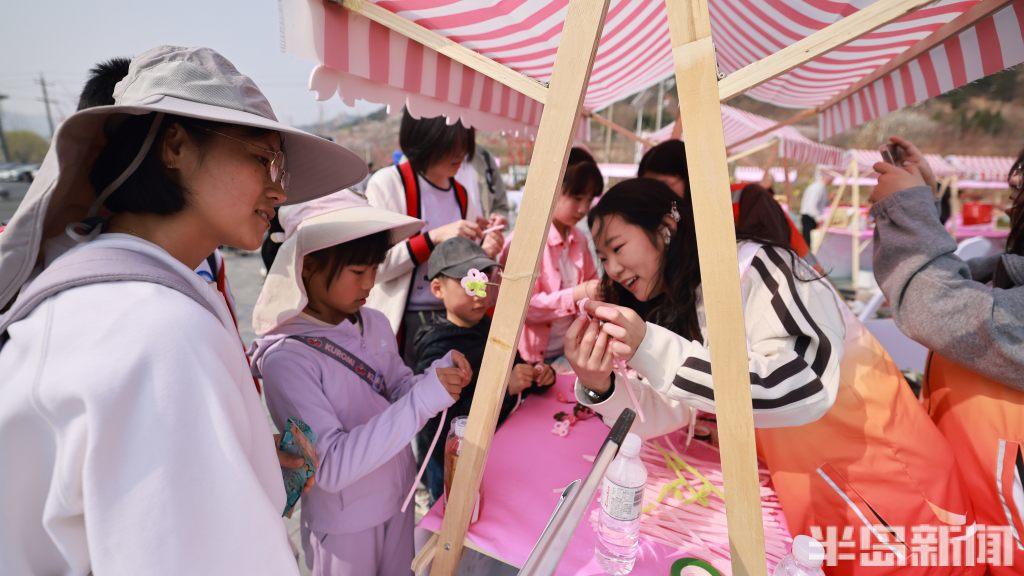 游客手持文化“两创”游园会打卡册,跟随打卡点位导览图,开启了花间游园之旅。在崂山养心操体验区,游客跟随文化传送员一起舒展身体、静心养性,在呼吸吐纳间感受崂山非遗文化的独特魅力。