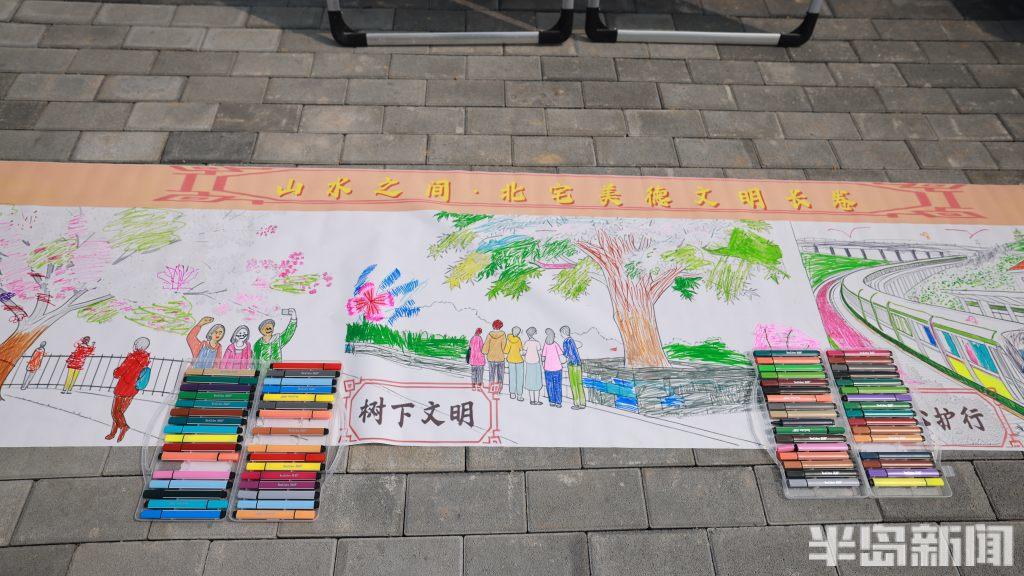 文明倡导互动区内,游客通过套圈游戏解读文明行为的规范含义,共绘美德北宅山水长卷,共学《崂记文明》经典金句,在游戏中将文明理念内化于心、外化于行。传统美德配对体验区里,美德主题配对卡片吸引了不少亲子家庭驻足。大家将“孝亲敬老”“诚实守信”等传统美德关键词与其通俗解读一一对应,在寓教于乐中传承中华美德,涵养良好家风。