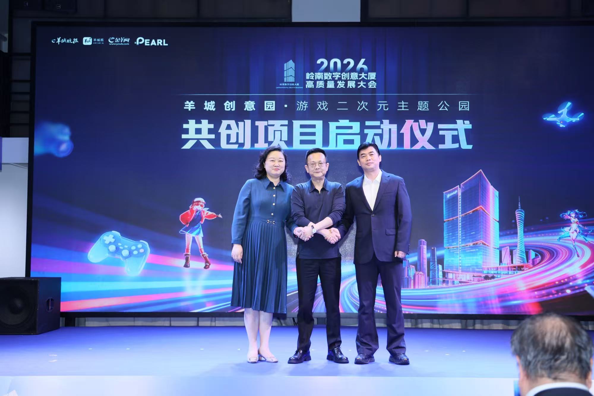 天河区委副书记、宣传部部长段德海,广州市游戏行业协会会长王娟与丁华共同启动羊城创意园游戏二次元主题公园共创项目。天河区天园街道党工委书记宋爱平发布羊城创意产业园“软件人才社区”项目。