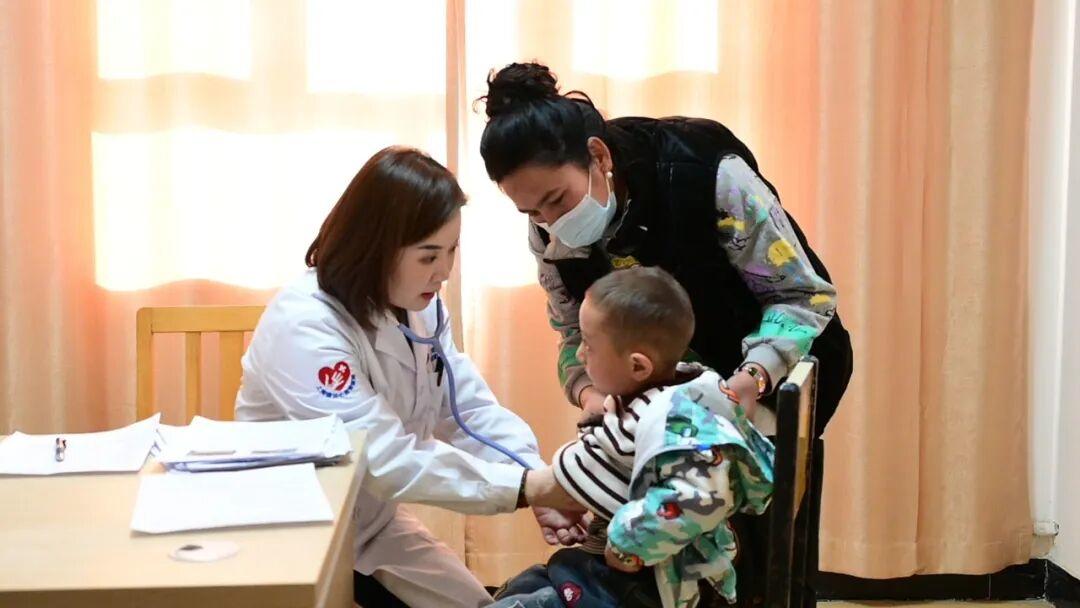 专家为儿童听诊。喀什地区融媒体中心 实习记者权雅妮 摄