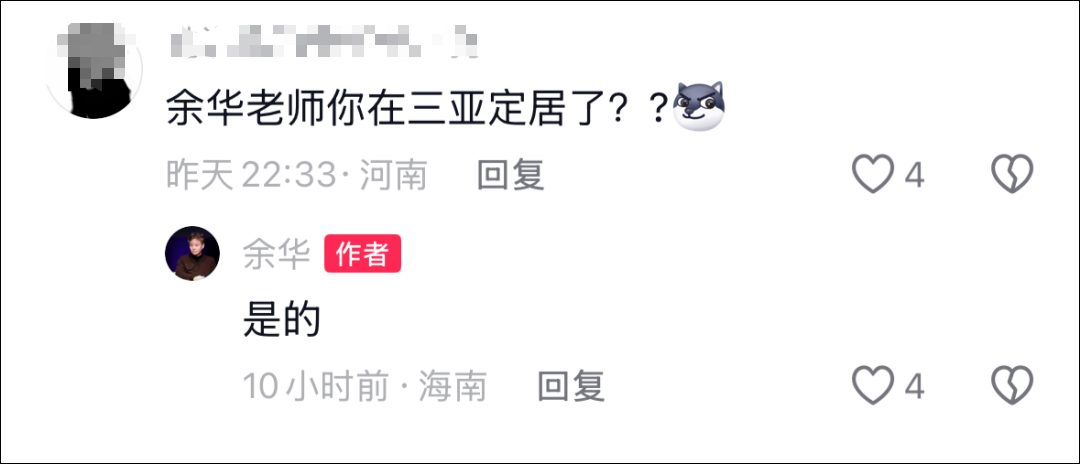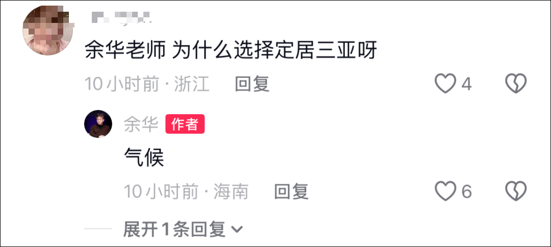 3月26日,作家余华在社交平台视频评论区回应网友调侃时,明确表示自己已在三亚定居。并表示选择定居三亚的是因为气候。