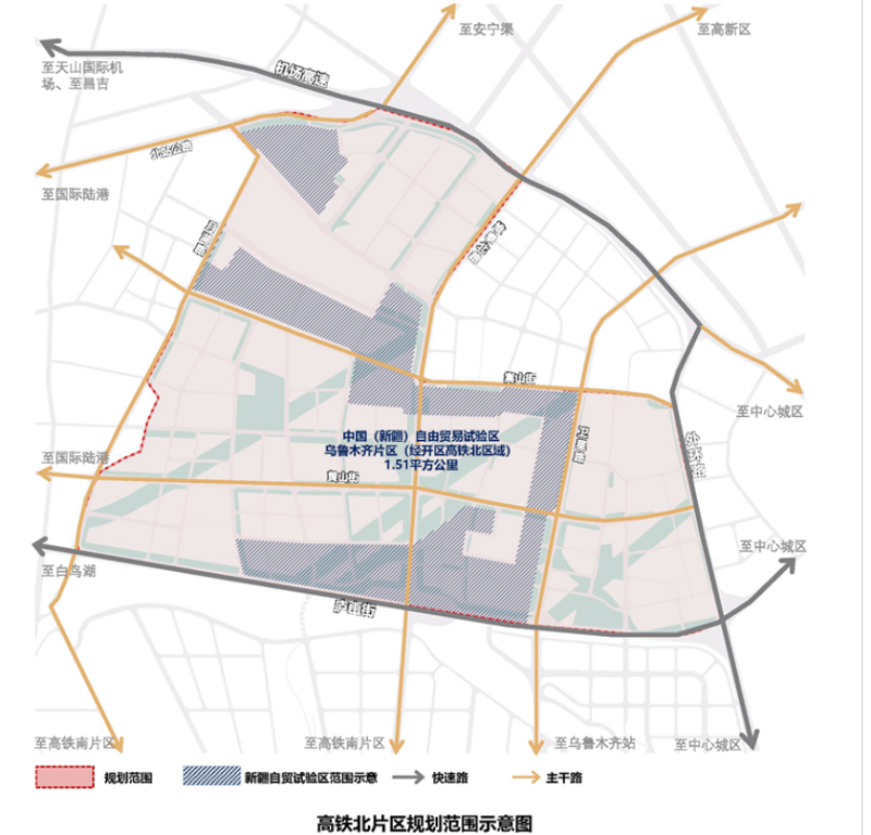2026年1月,《乌鲁木齐经开区高铁北片区控制性详细规划及城市设计》通过乌鲁木齐市国土空间规划委员会审批,规划范围为北至机场高速、南至庐山街、西临月湖路、东到外环路,面积约4.9平方公里。