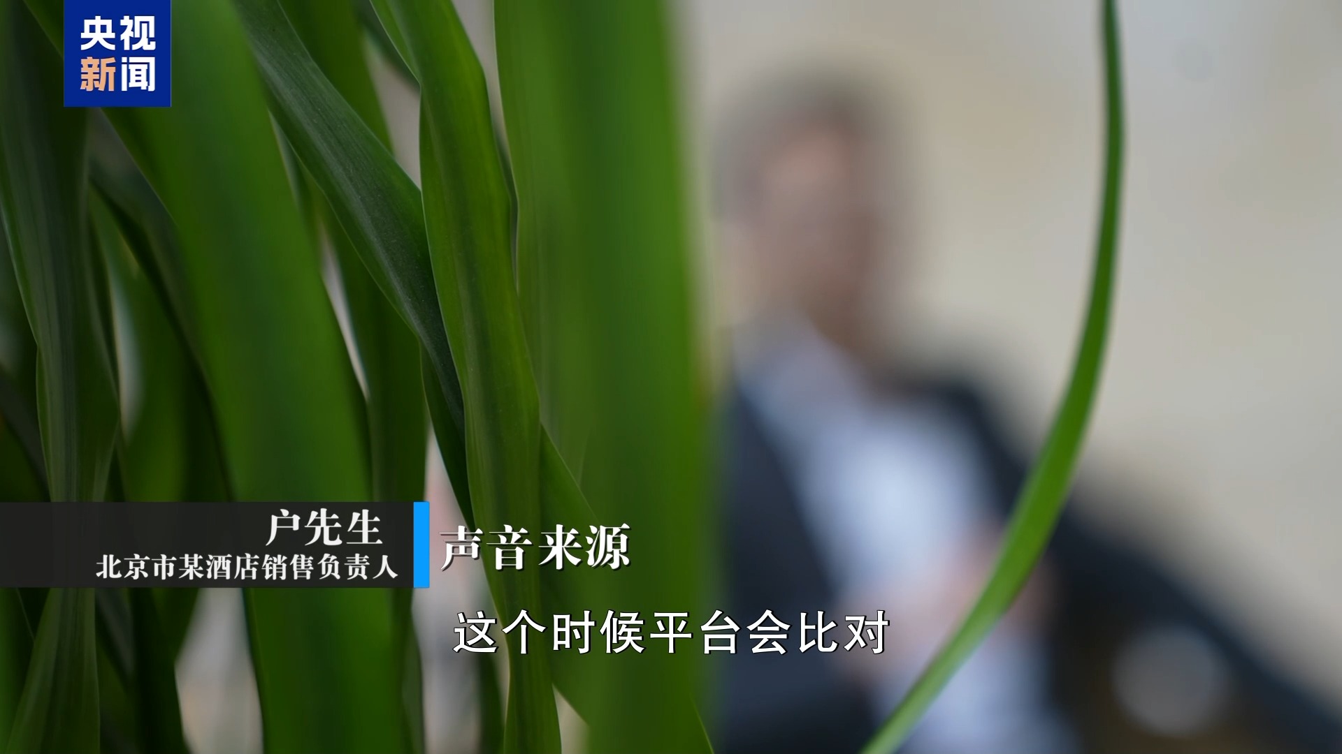 北京市某酒店销售负责人 户先生:平台会假扮成客人,说一下具体诉求,什么时候入住,问一下价格,这个时候平台会比对,在其他平台上的价格是什么样。如果比自己的平台价格低,这个时候酒店就麻烦了,酒店并没有履行价格最低承诺,推流的等级就降到最低。想搜索这家酒店,要把这个酒店的全称一字不差打在搜索栏里才能找到,否则是找不到这家酒店的。