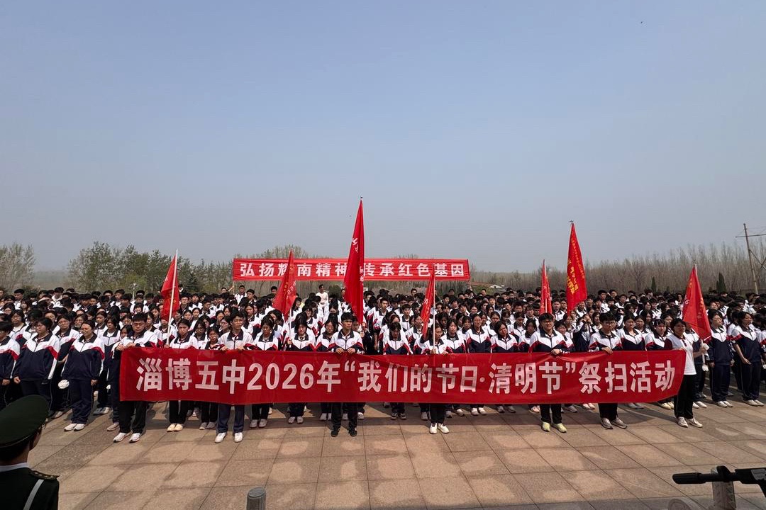 3月28日清晨,淄博五中高一级部的学生身着校服,在操场列成两路纵队,举行出征仪式。一年一度的“重走英雄路,缅怀烈士魂”主题教育活动,即将从这里出发,他们此次的目的地是淄博市革命烈士陵园。这不仅是远足锻炼,更是一堂“行走的思政课”。