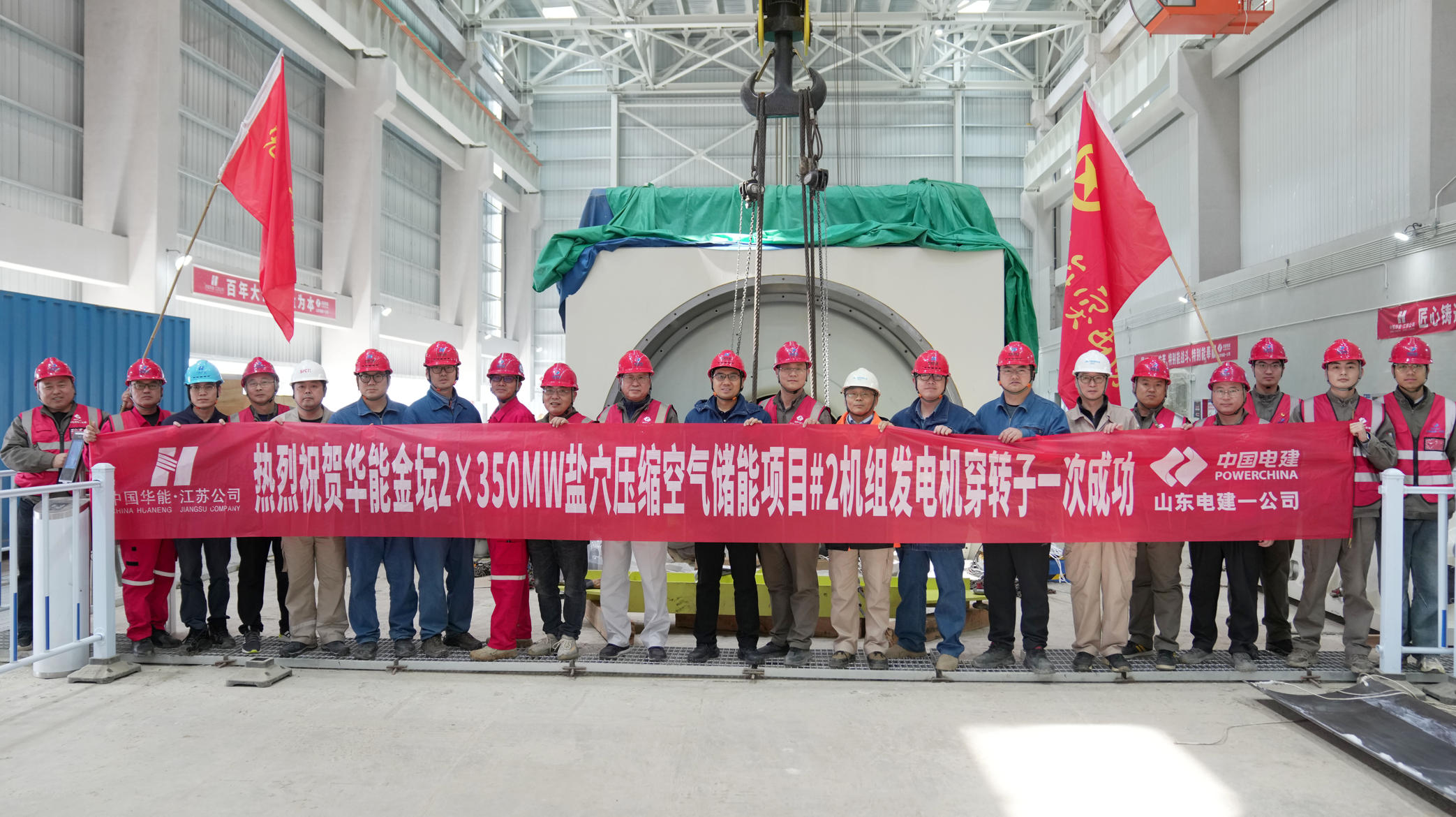 在山东电建一公司承建的华能金坛盐穴压缩空气储能二期项目#2机组现场,吊臂林立、焊花飞溅、机器轰鸣,数百名建设者以“时不我待、只争朝夕”的奋进姿态,投身施工热潮,用实干书写责任担当,推动项目建设开好局、起好步。