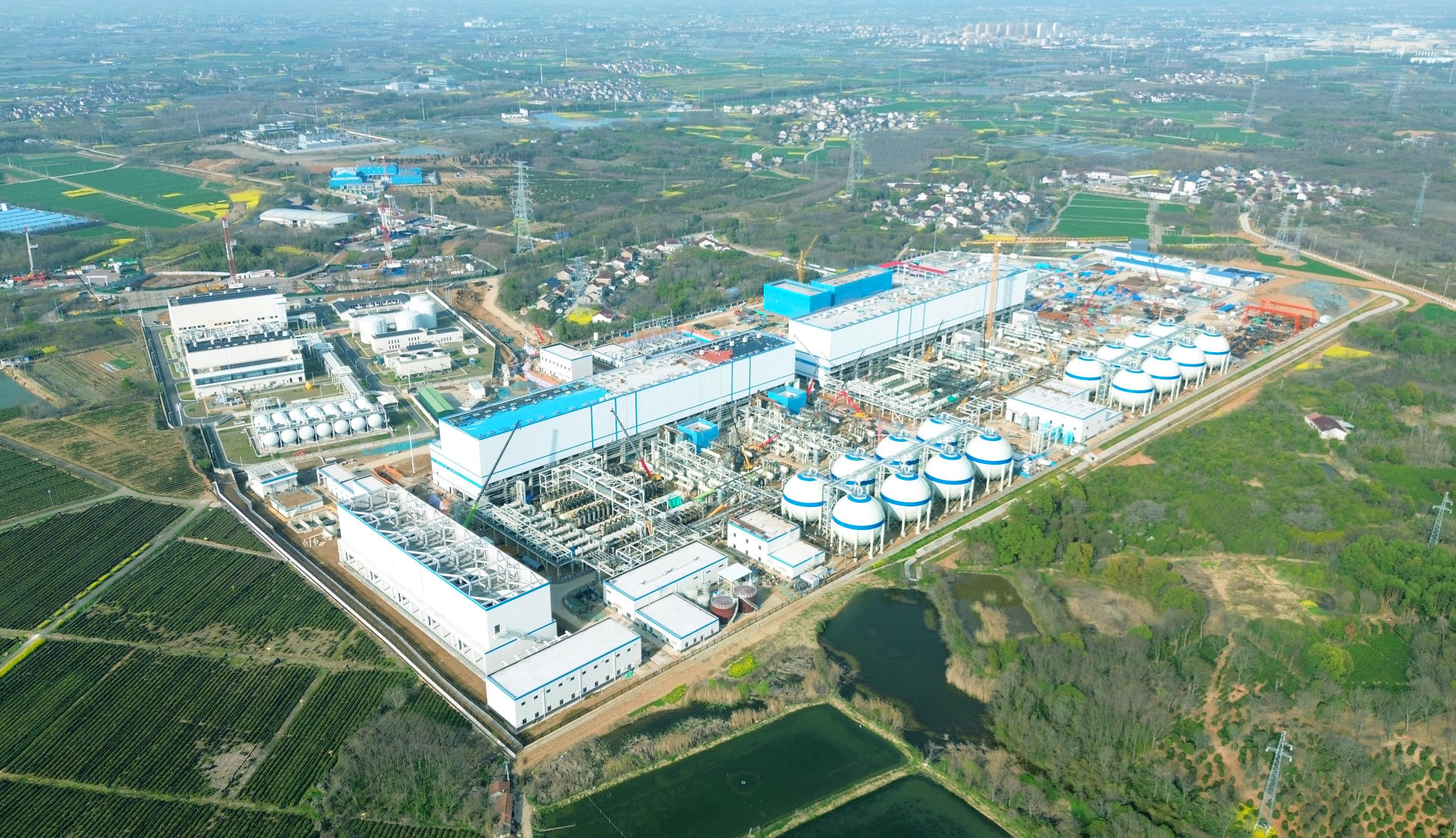 三月的江苏金坛茅山脚下,春意正浓。金黄的油菜花簇拥盛放,缀满工地墙外的田埂;绿油油的小麦拔节生长,“金坛雀舌”茶芽蓄势待发。自然景致与世界最大“空气充电宝”的茁壮成长交相辉映,诗意与奋进共生。