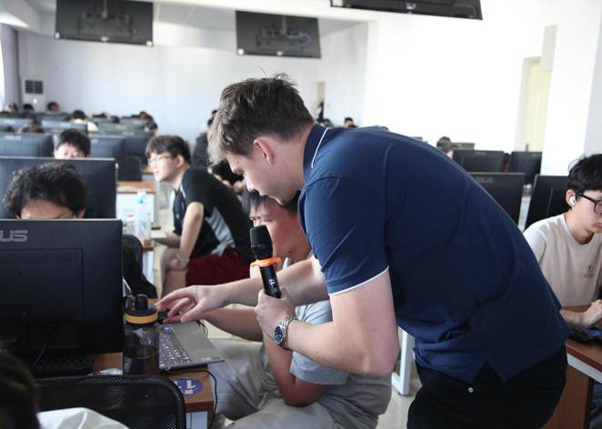 以此为依托,学校搭建中外师资双向交流、联合教研的常态化平台,通过外籍专家入校带教、中方骨干教师赴外研修、双语课程联合开发等方式,系统性提升师资队伍国际化教学能力与双师素养。匈牙利米什科尔茨大学的Martin Szabo老师在参与联合教研后,参观了歌尔光学产业园和校内人工智能产教融合实践基地等,由衷赞叹:“在这里的这段日子,课堂案例和产业应用结合得非常好,学生们不仅学到了技术,更理解了技术如何服务于产业发展。”正是这样的深度交流,让国际教育理念在本土土壤中生根发芽,打造了一支兼具国际视野、技术能力与本土实践经验的教学团队,全面夯实了学校国际化办学的内生能力。
