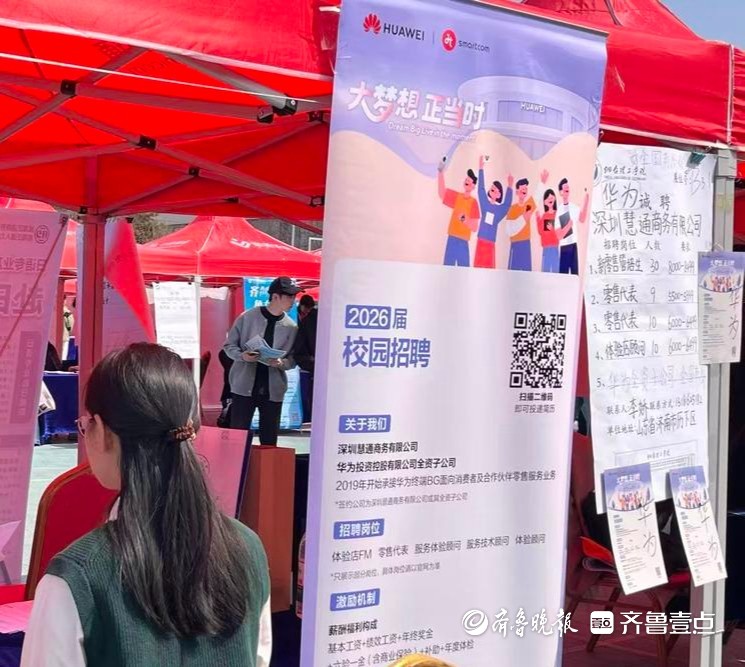 多数企业将用工需求、薪资福利等核心信息提前张贴于展位海报上,方便学生直观了解岗位详情。